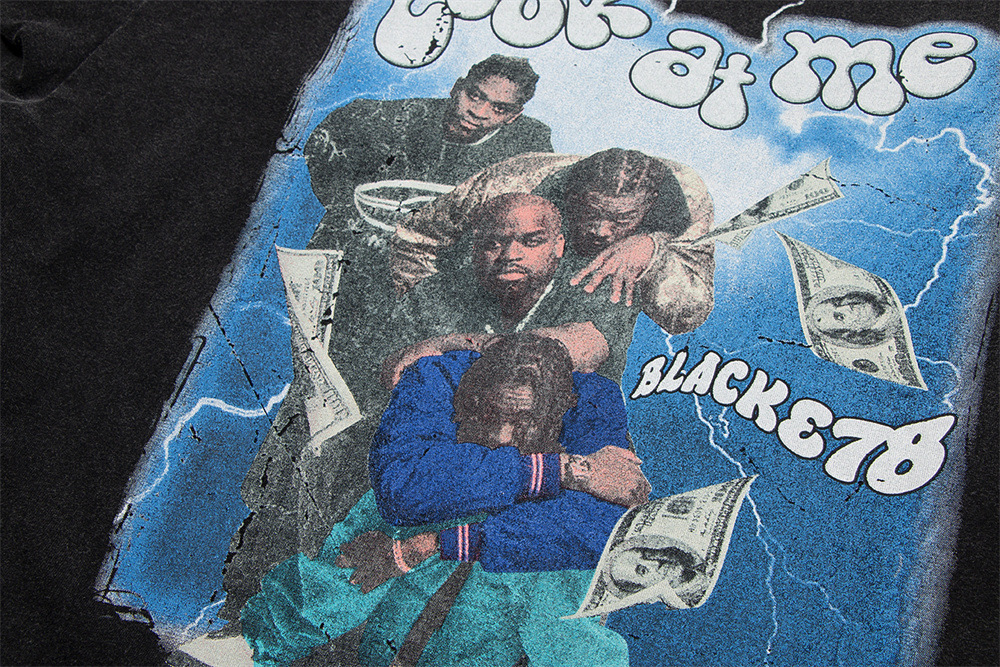 Color: Distressed blue, retro black