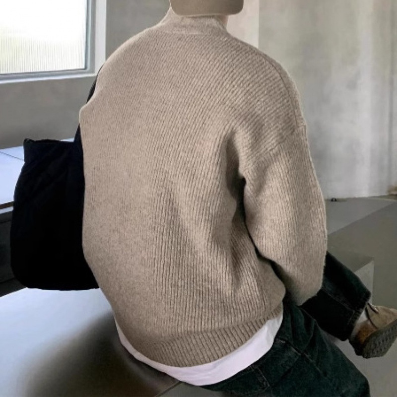 Mens Relaxed-fit V-neck Knit Jacket Versatile And Minimalist Style