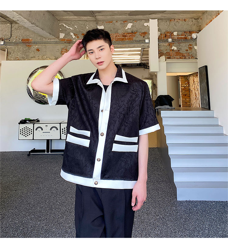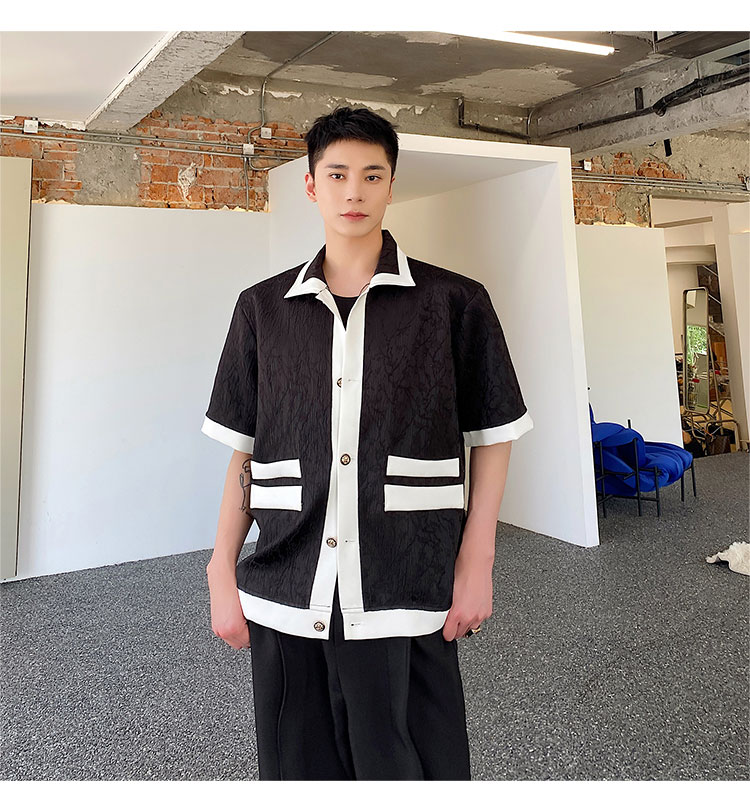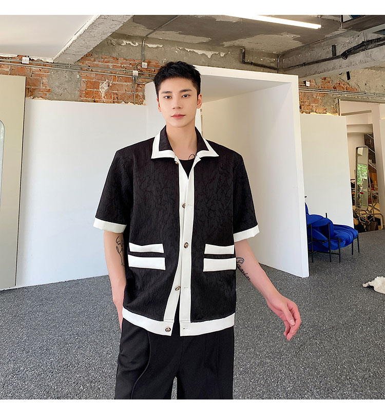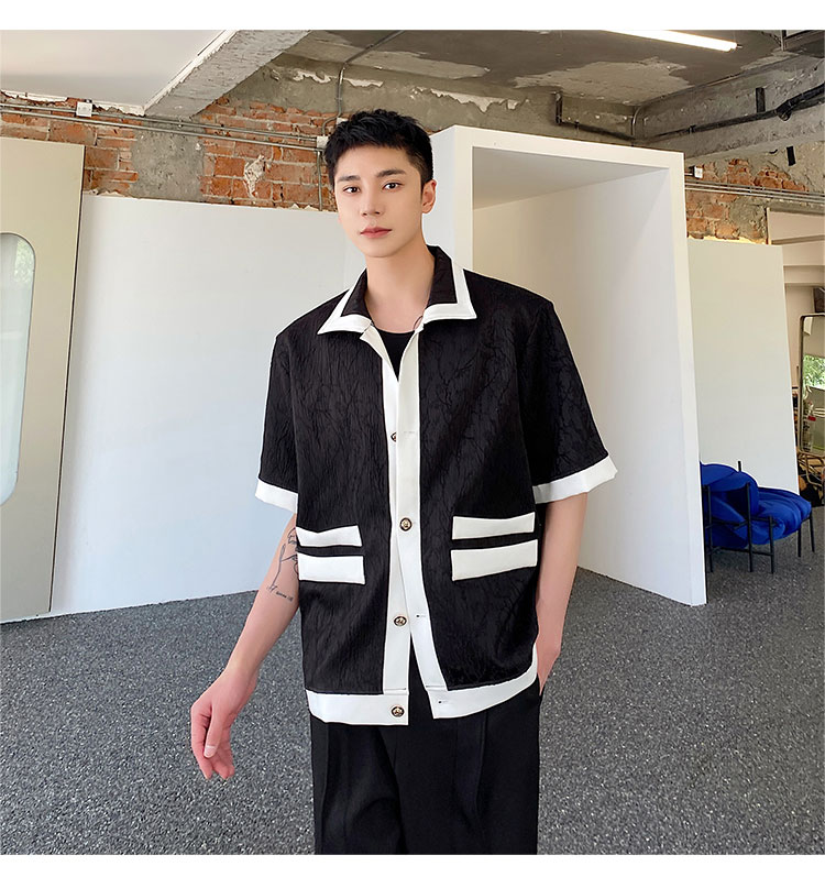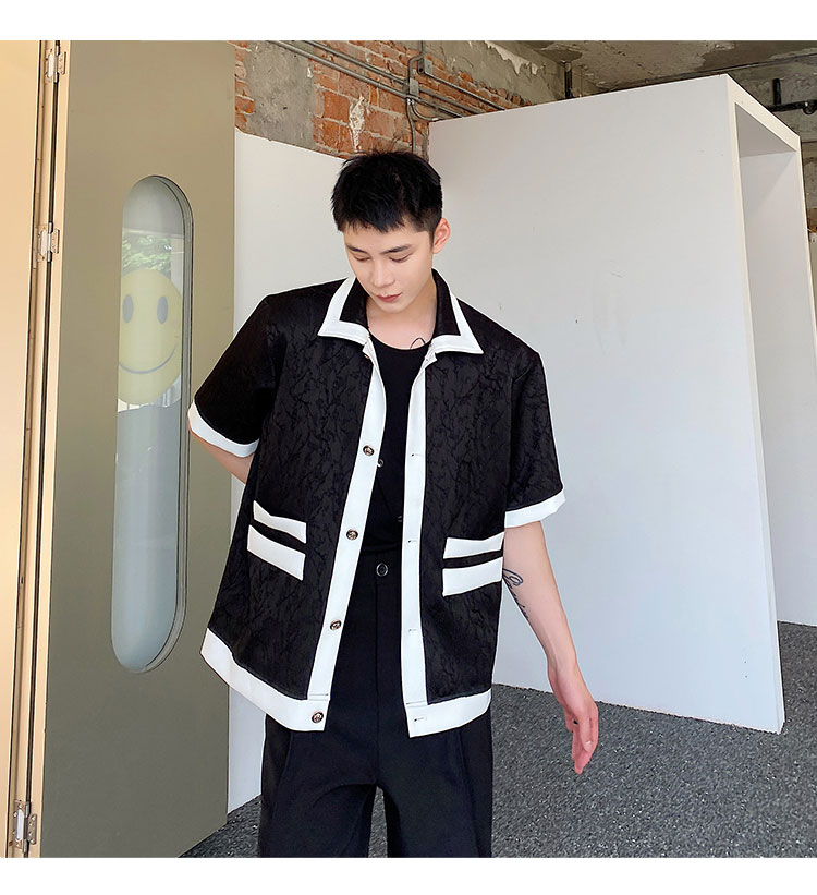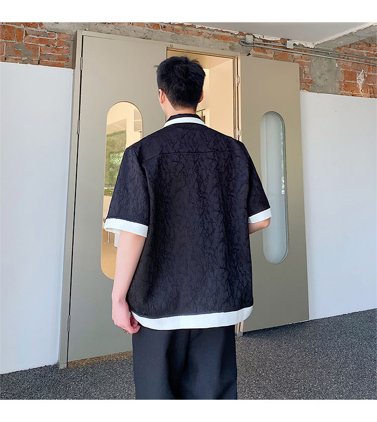 Men's Retro Color Contrast Edging Short Sleeved Shirt