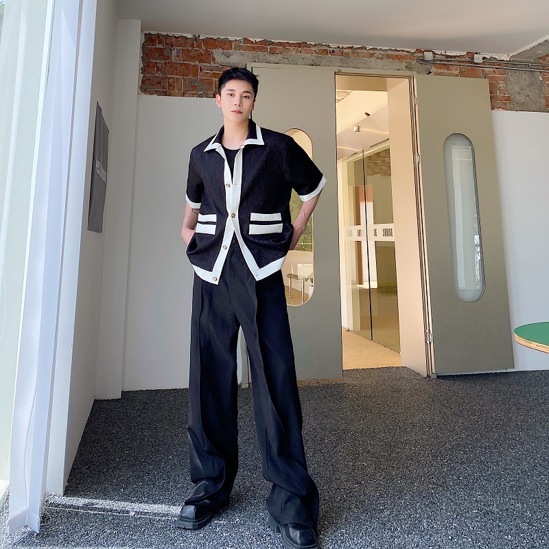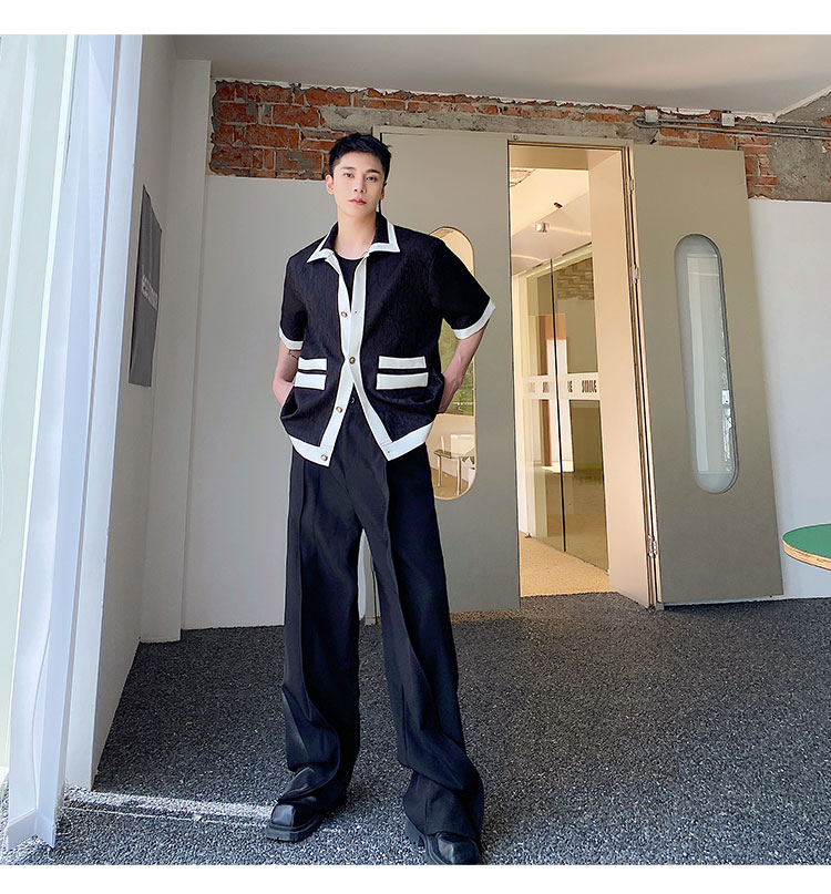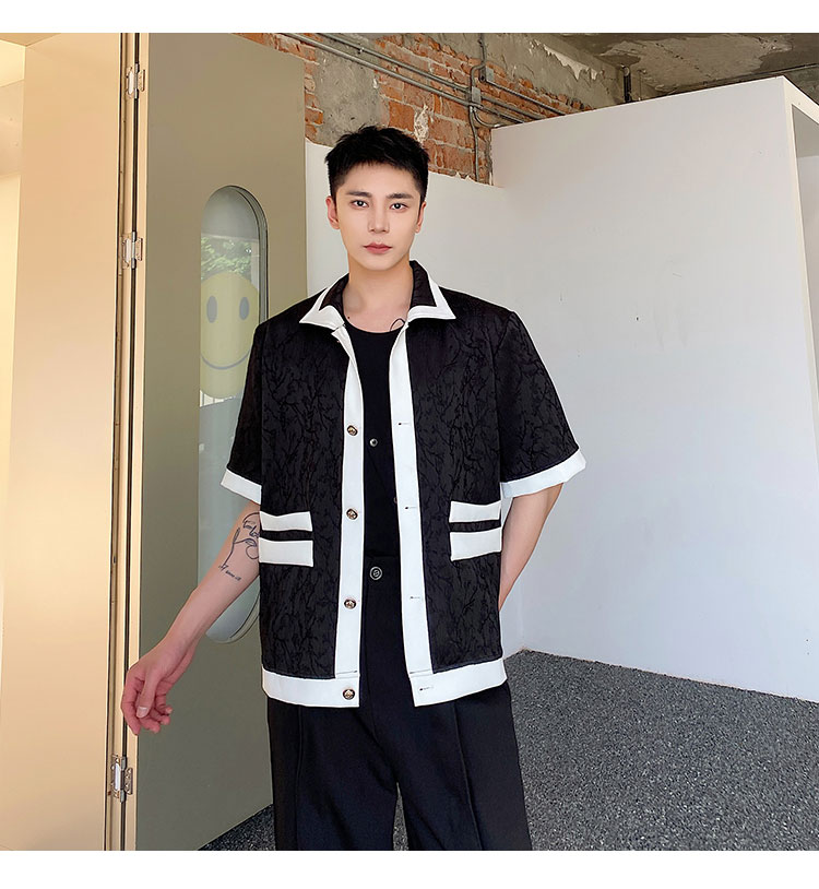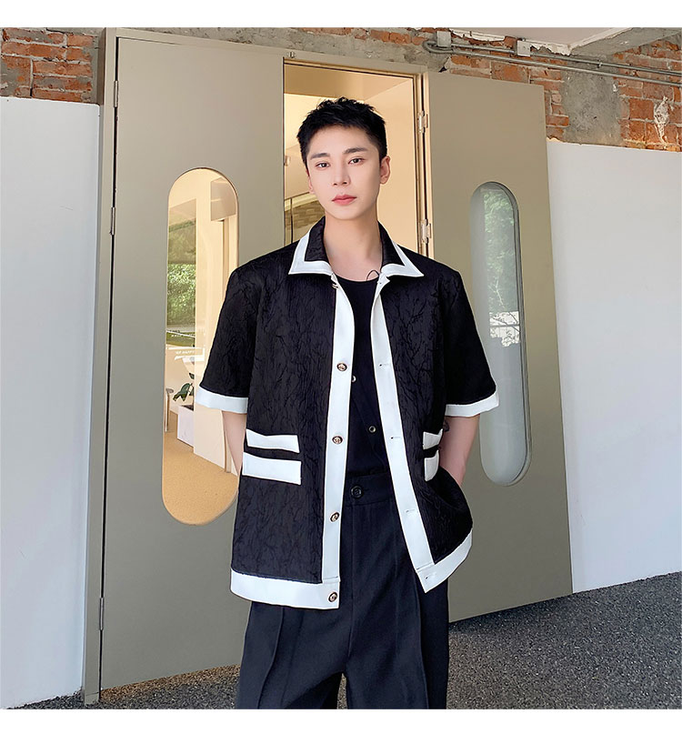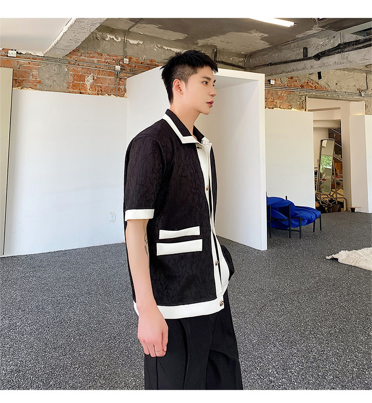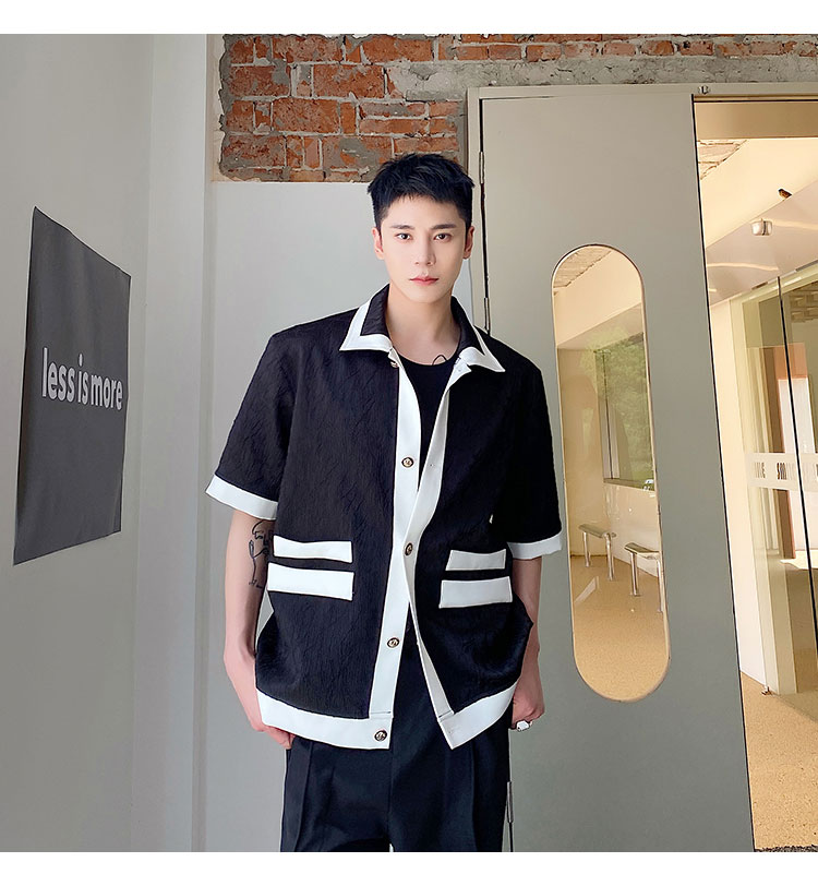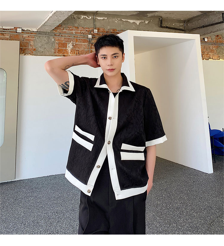 Men's Retro Color Contrast Edging Short Sleeved Shirt
