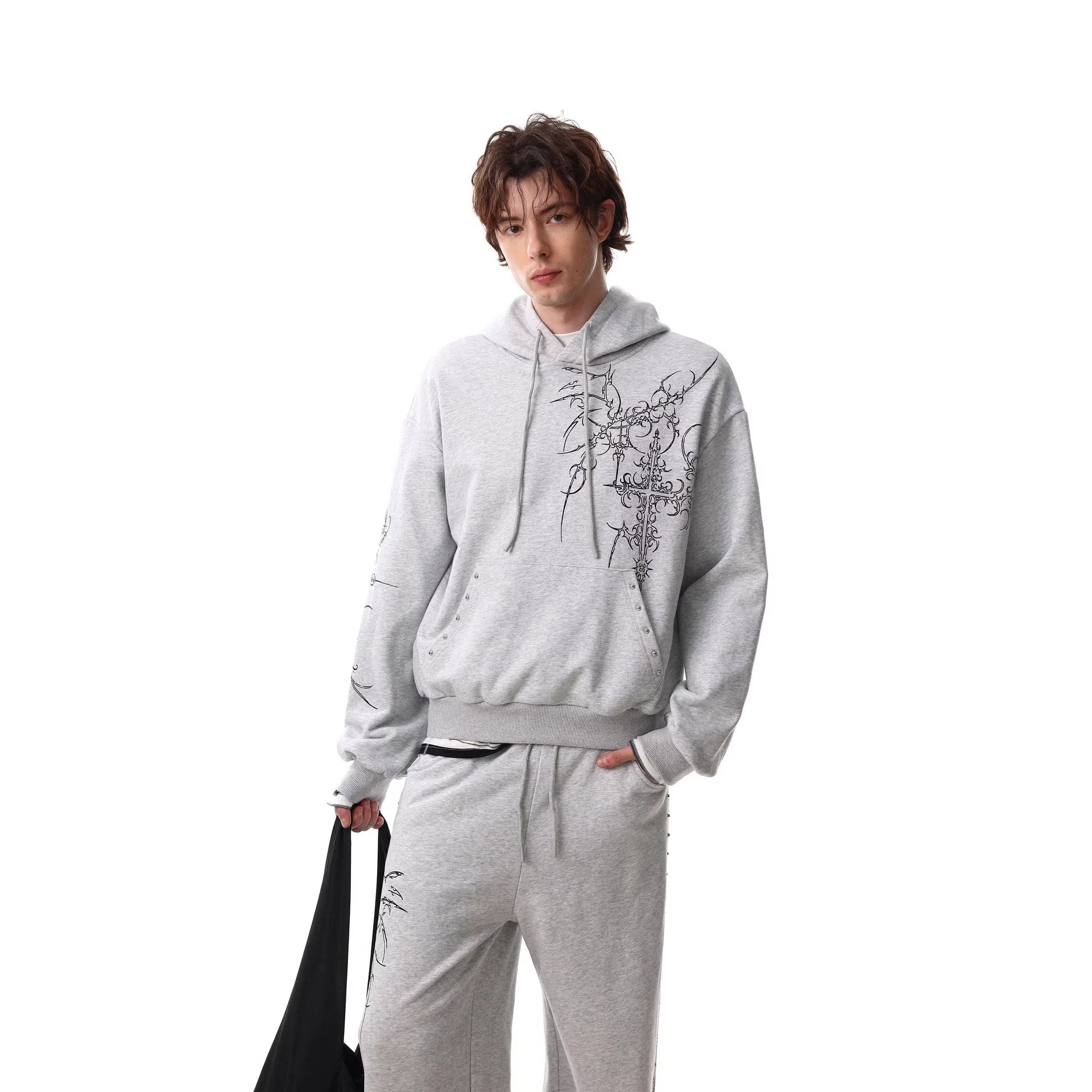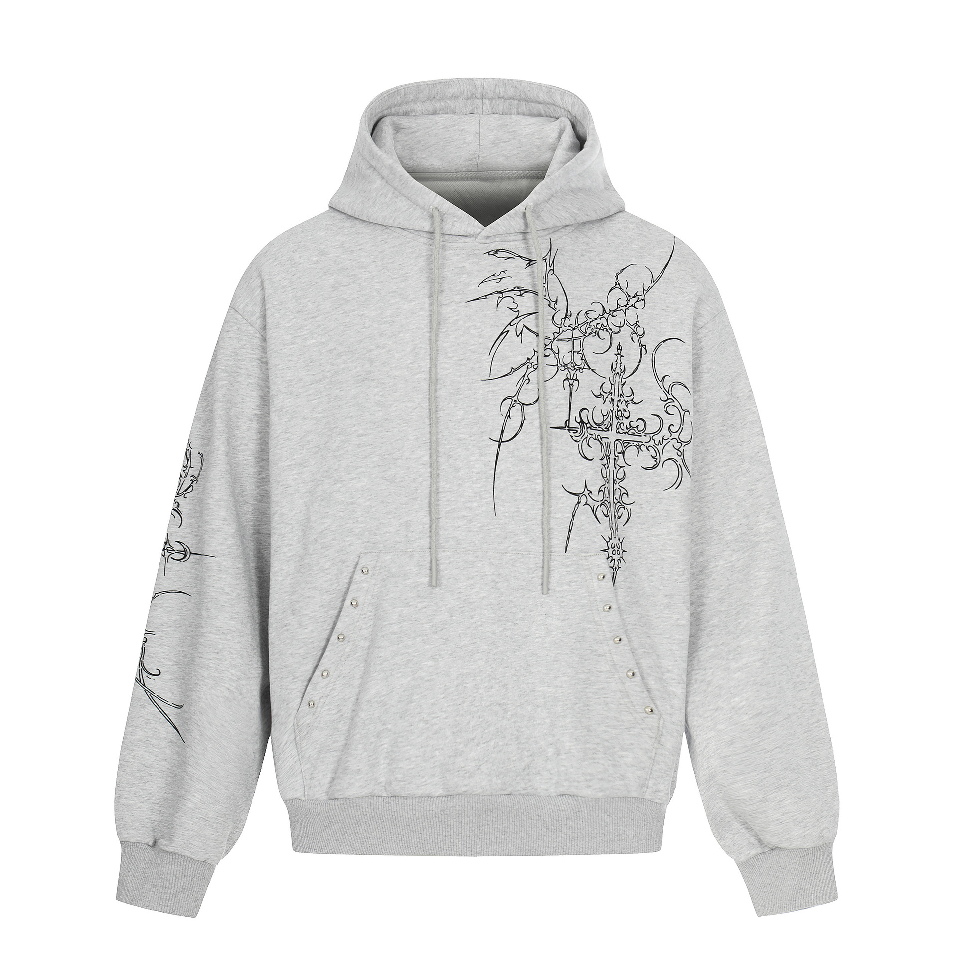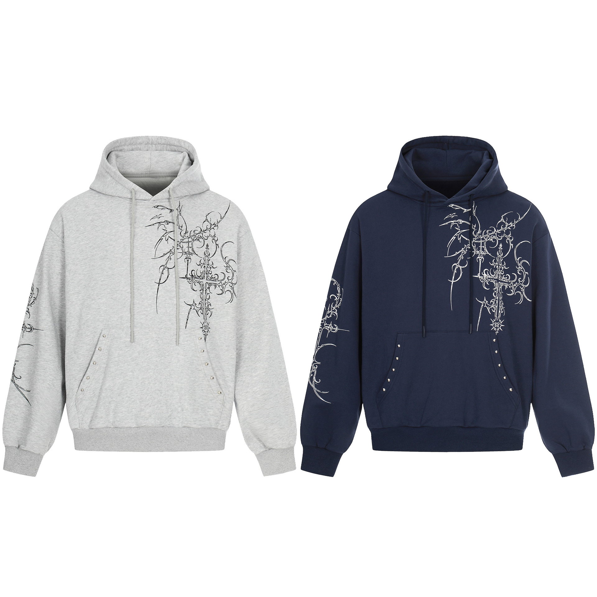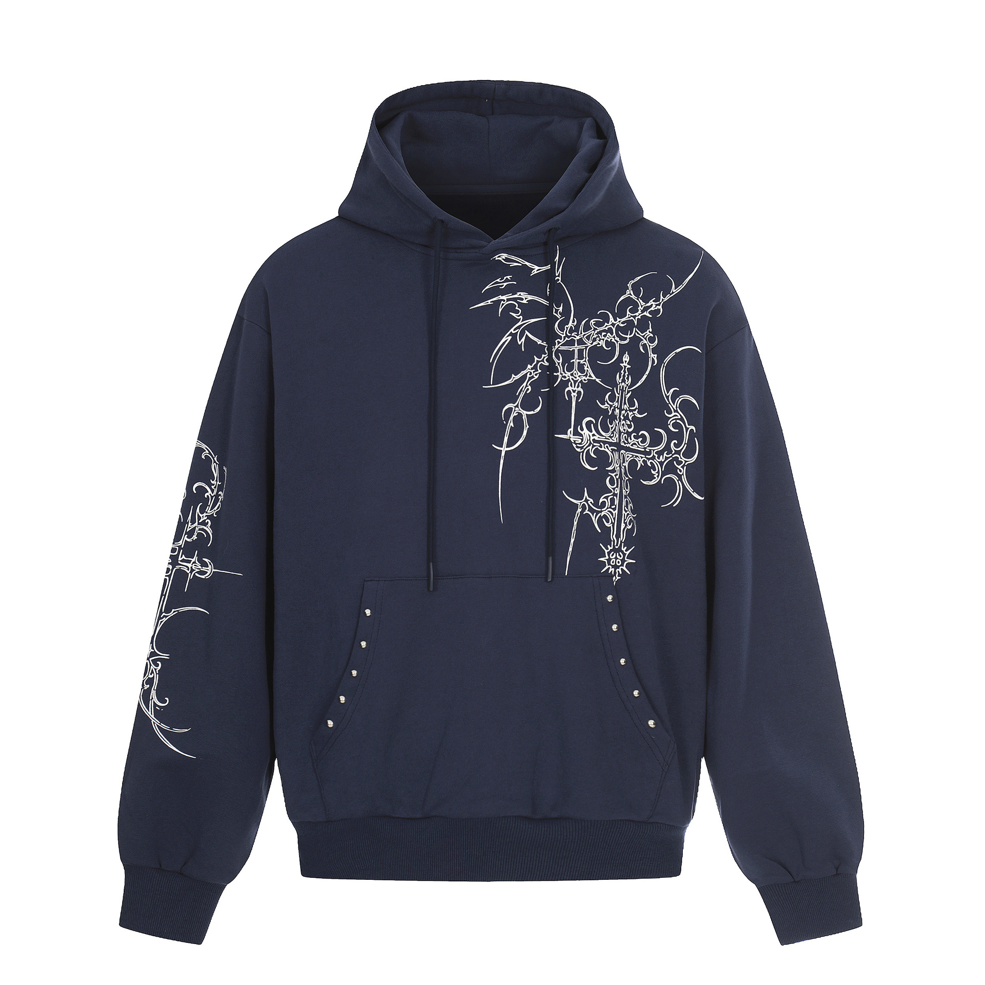Mens Retro European And American-Style Cross-Studded Hoodie With A Hood