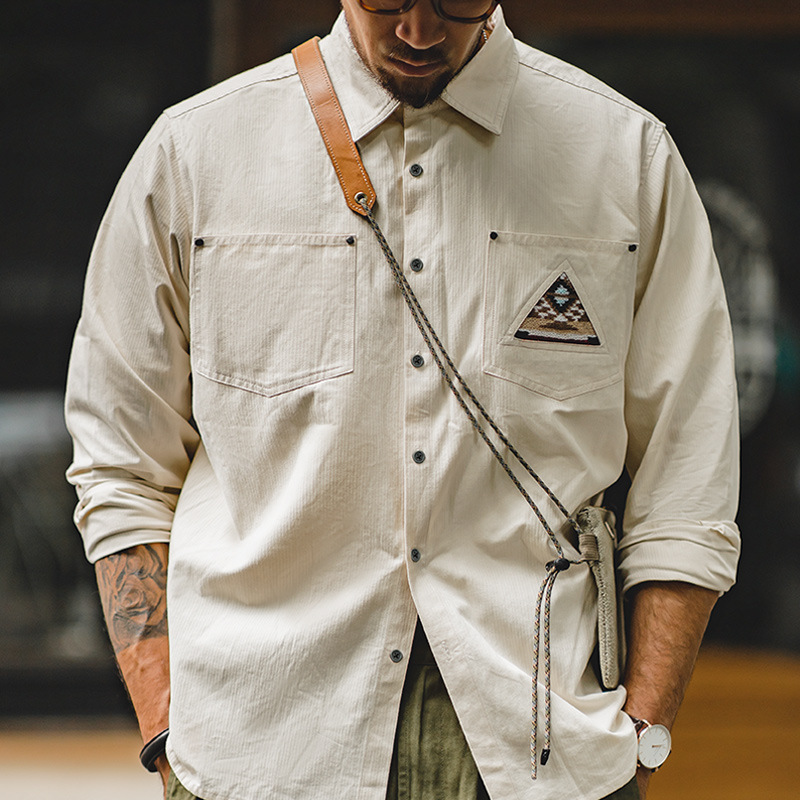 Men's Retro Indian Totem Creamy-white Long-sleeved Shirt