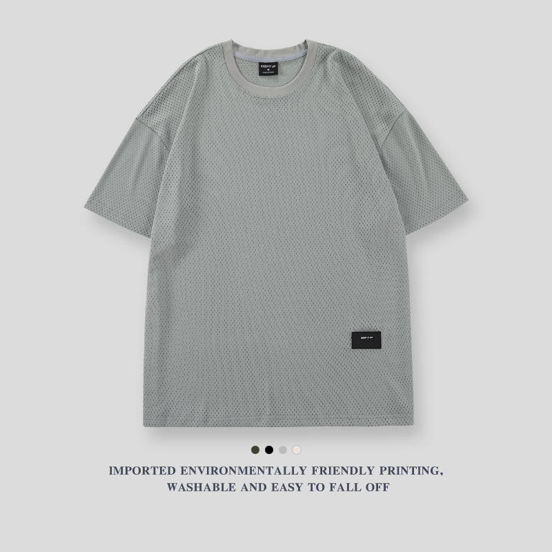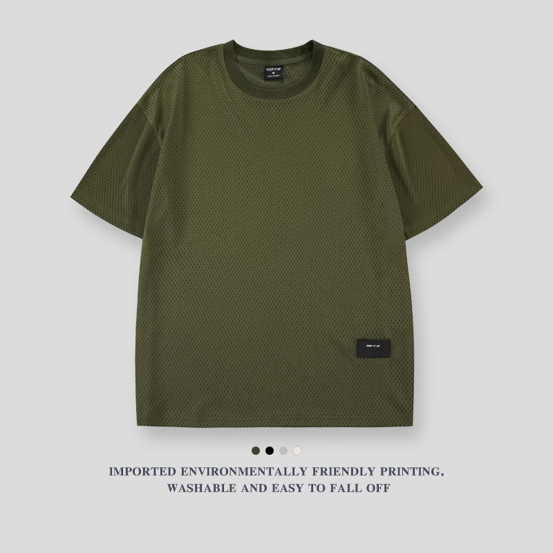 Men's Retro Large Mesh Heavy Weight Short Sleeve