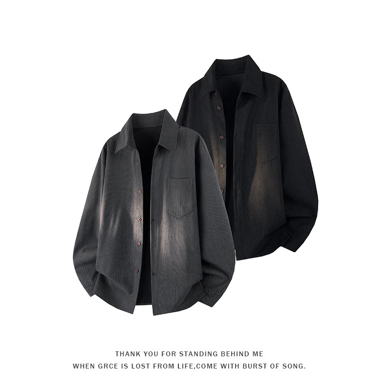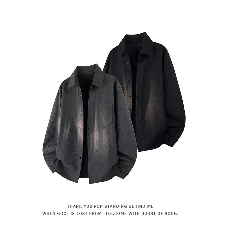 Mens Retro Loose-Fit Long-Sleeve Shirt
