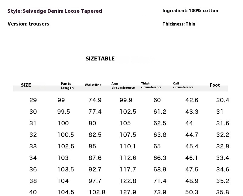 Size: 29, 30, 31, 32, 33, 34, 36, 38