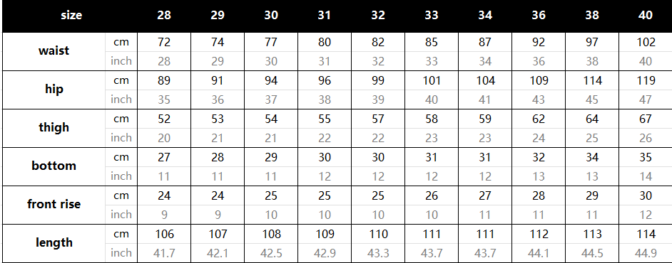 Sizes: 28,30,32,34,36,38,40,29,31,33