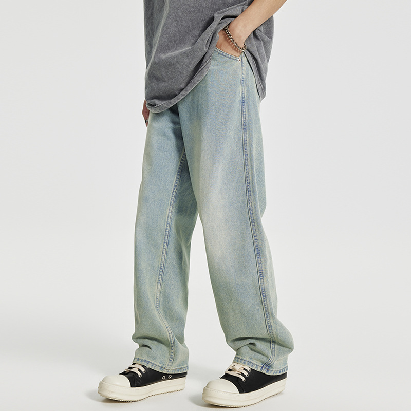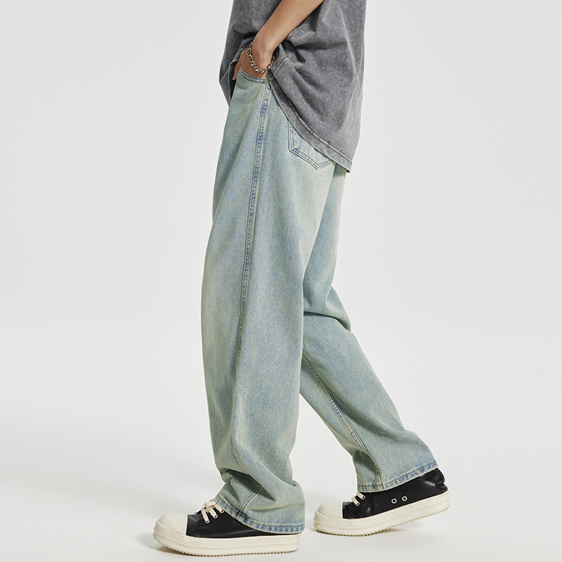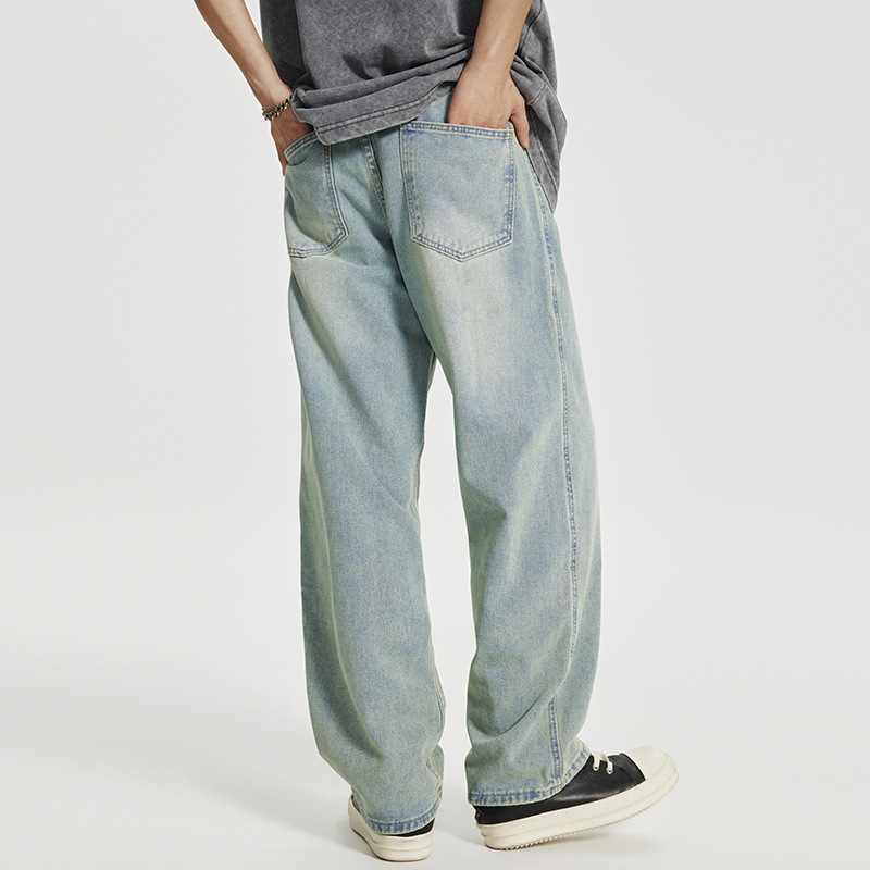 Men's Retro Washed Distressed Light-colored Jeans