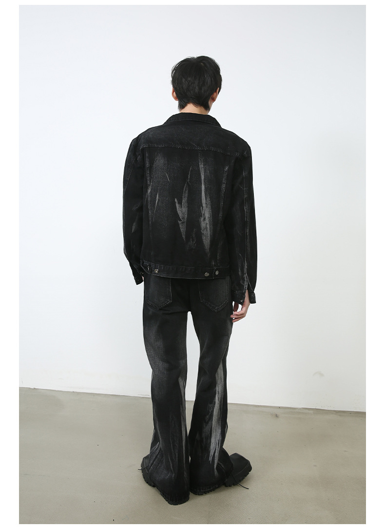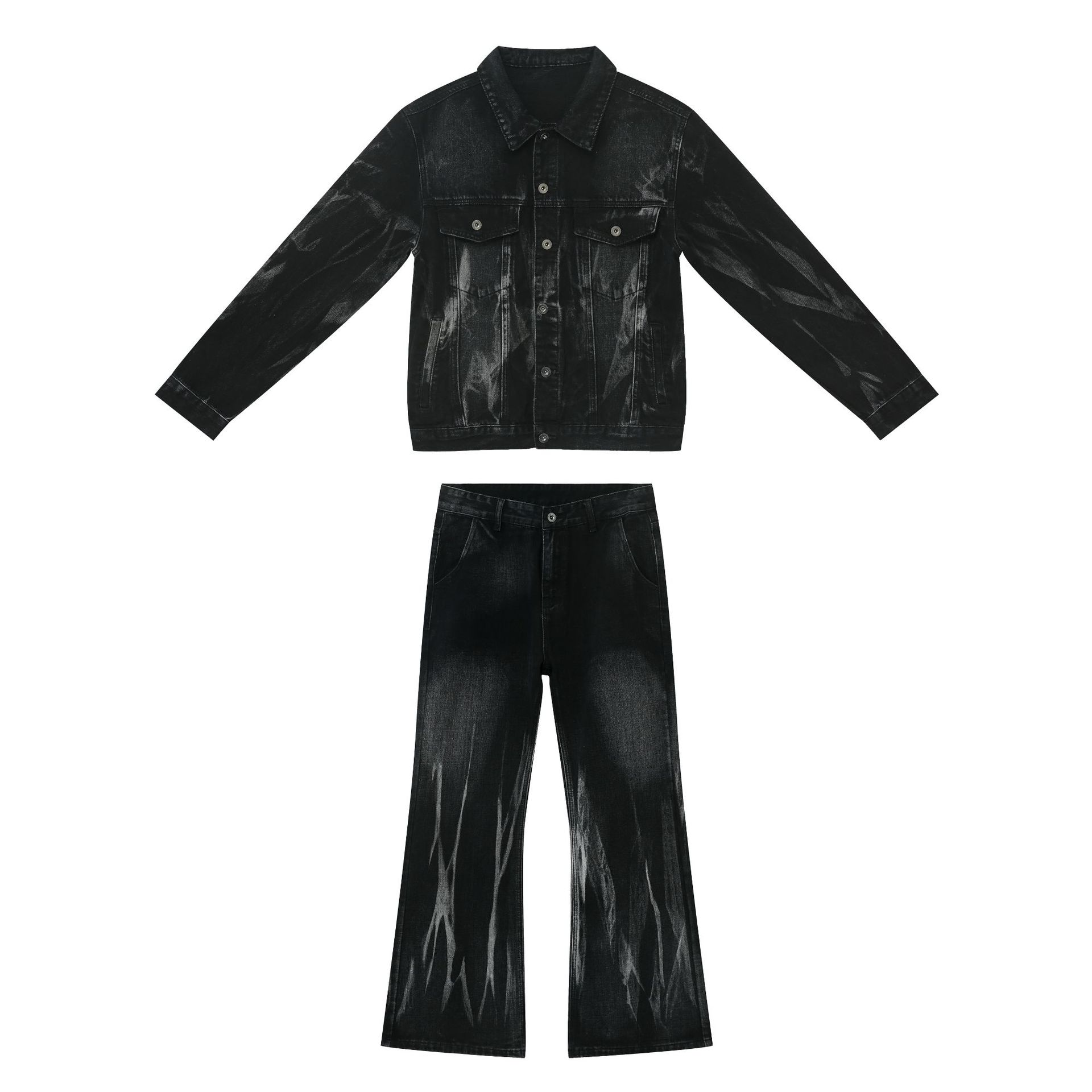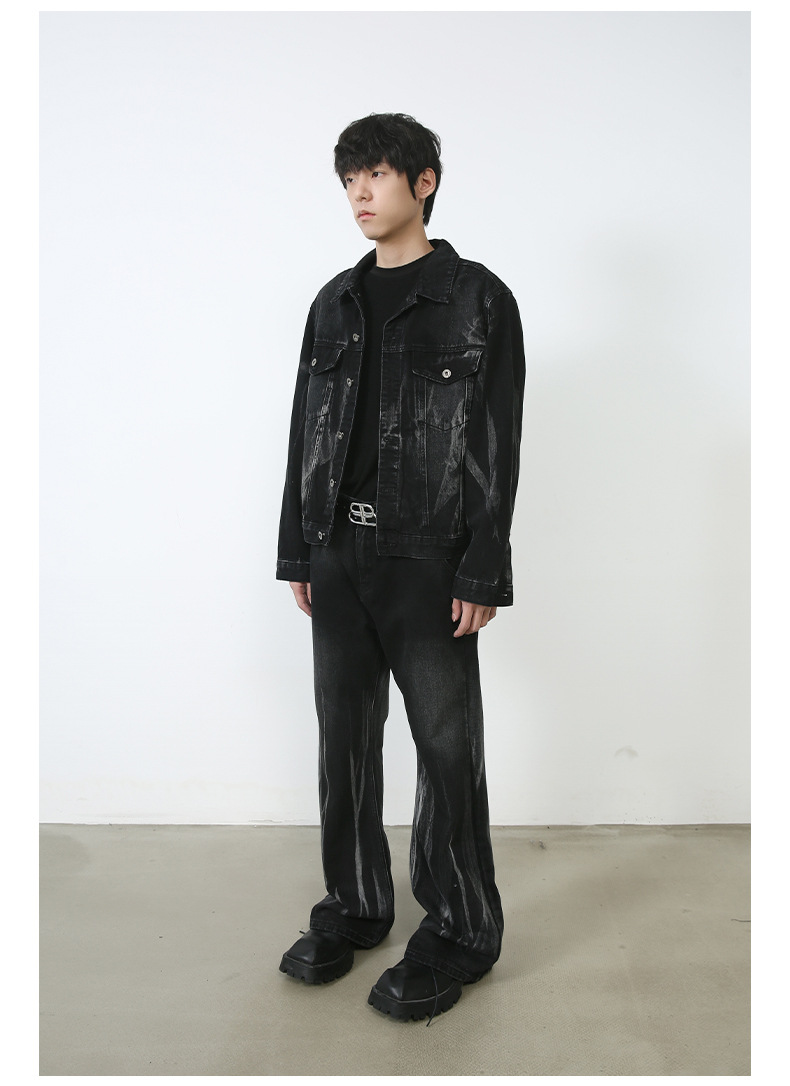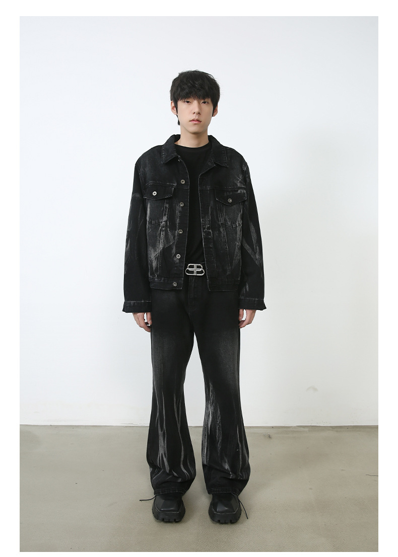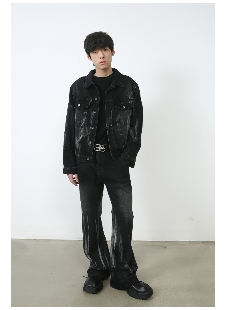 Color: black and gray coat, black and gray trousers