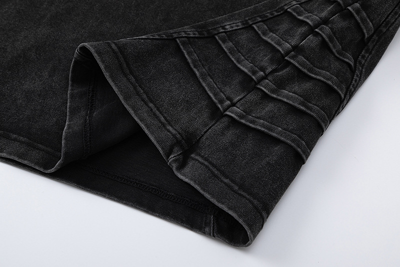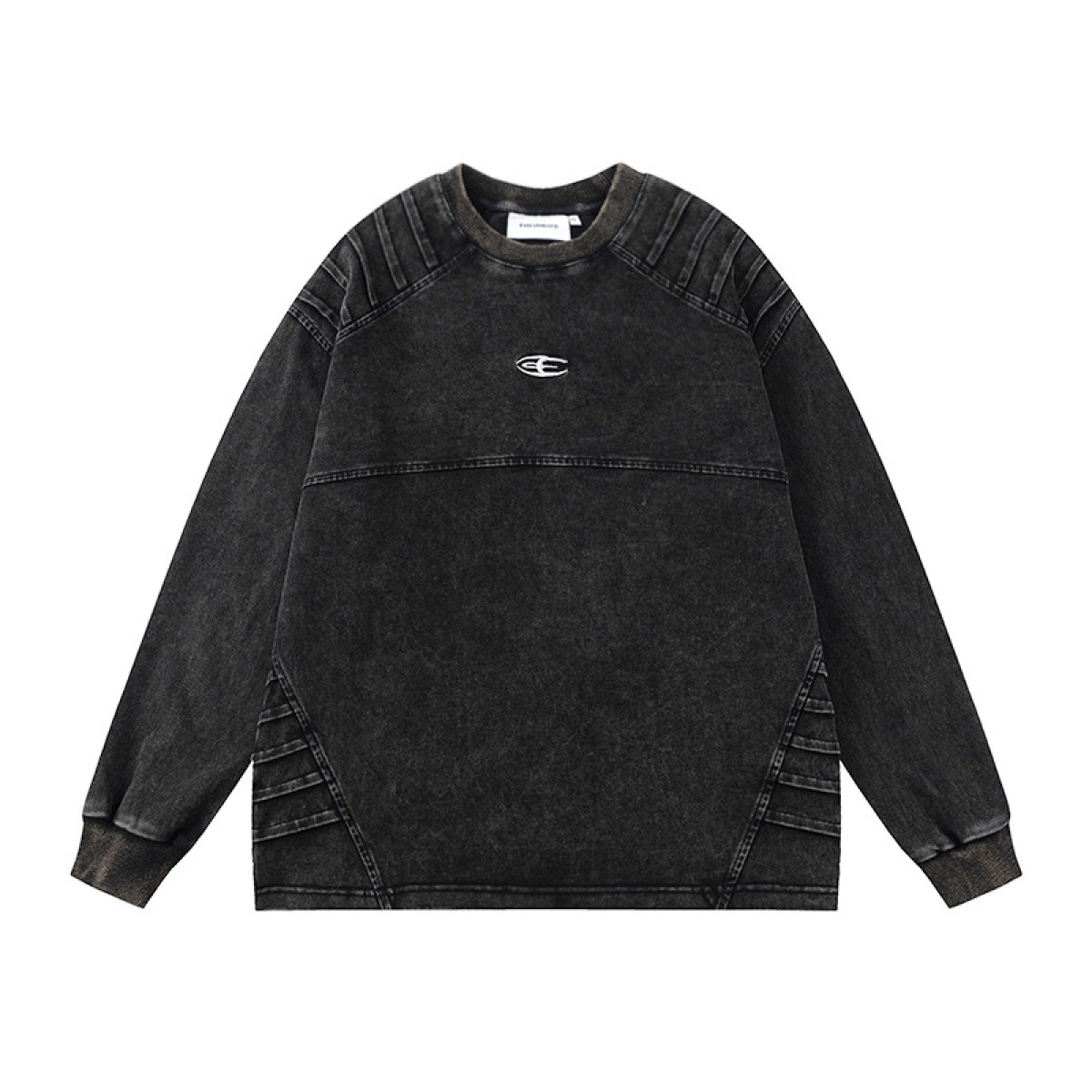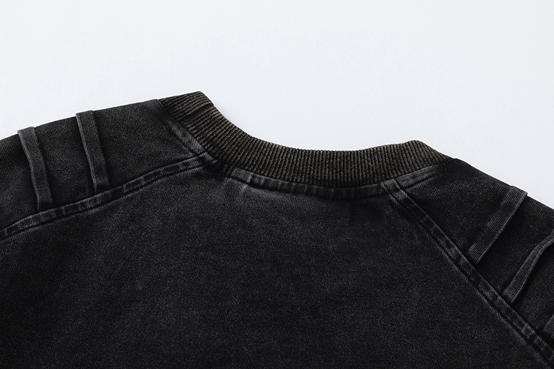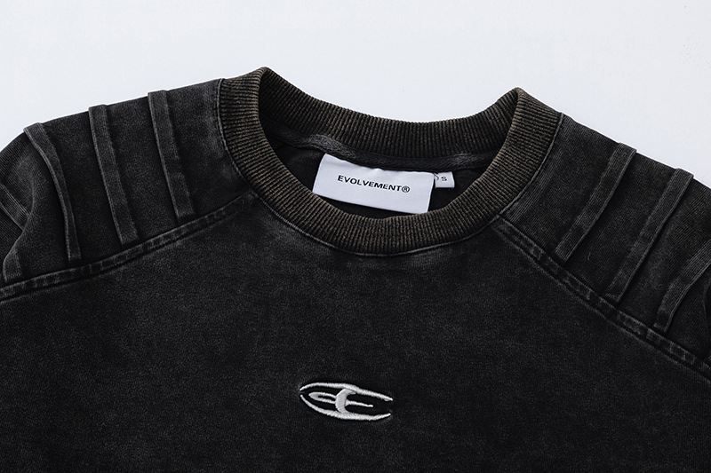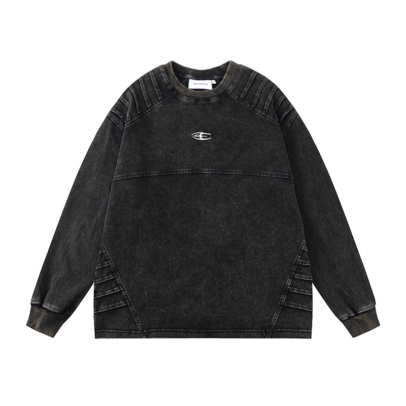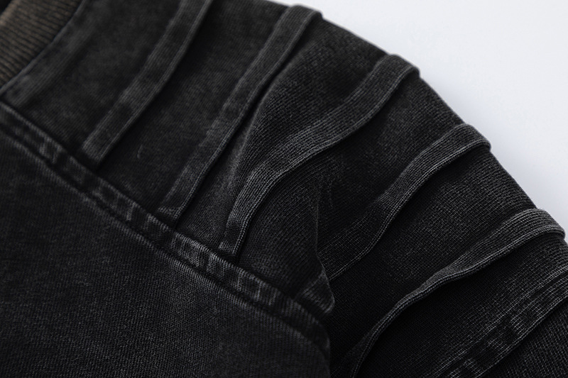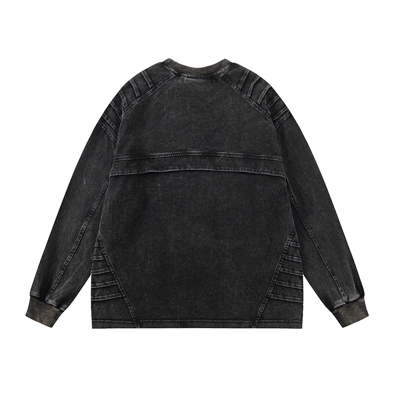 Men's Retro Worn Looking Washed-out Pleated Long-sleeved T-shirt