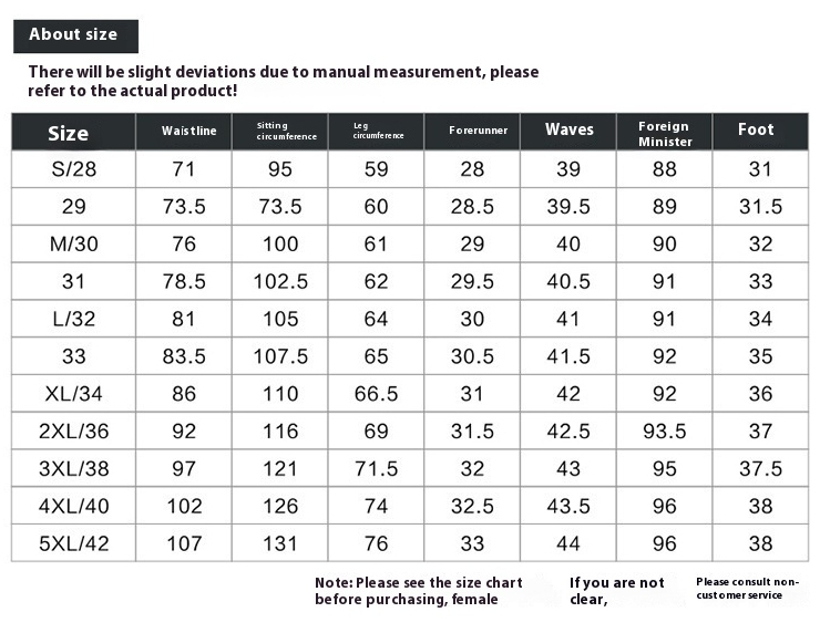 Size: 28, 29, 30, 31, 32, 33, 34, 36, 38, 40, 42