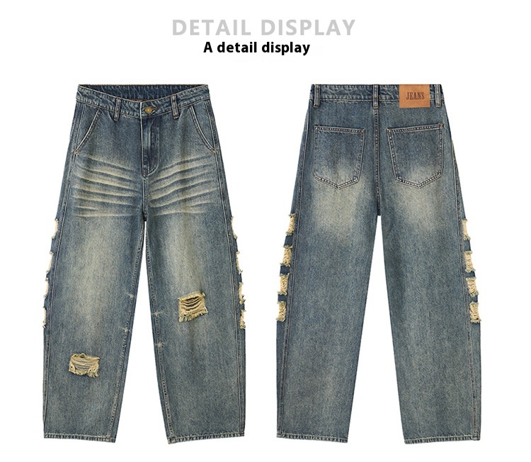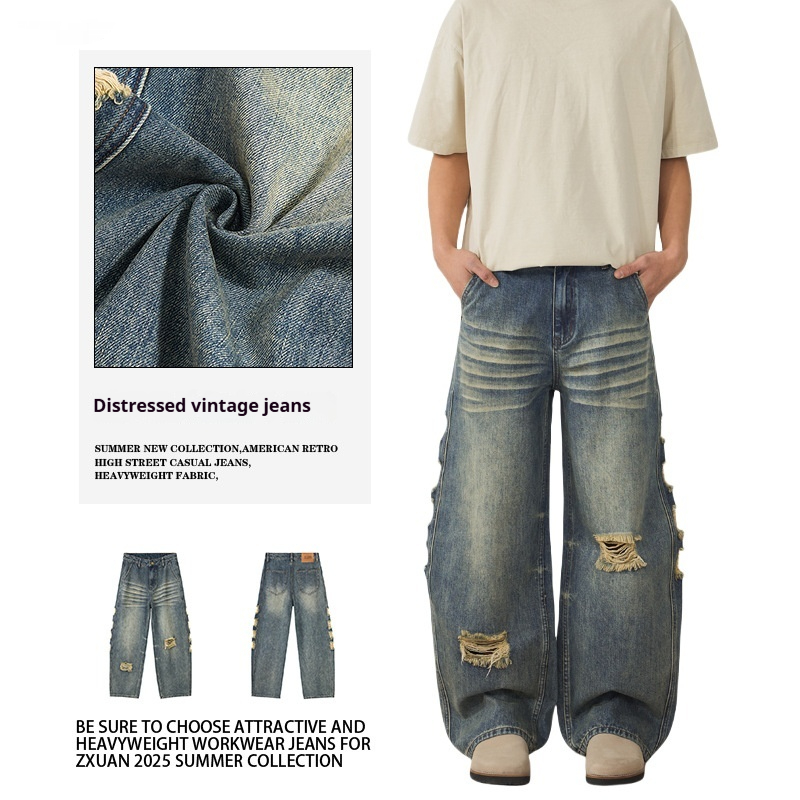 Men's Ripped Wide-leg Jeans