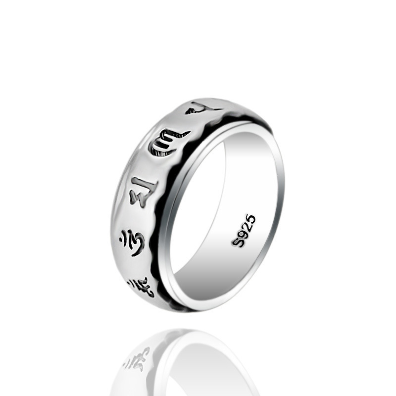 Mens Rotating Ring With The Six-Character Sanskrit Mantra In Silver