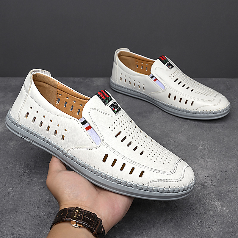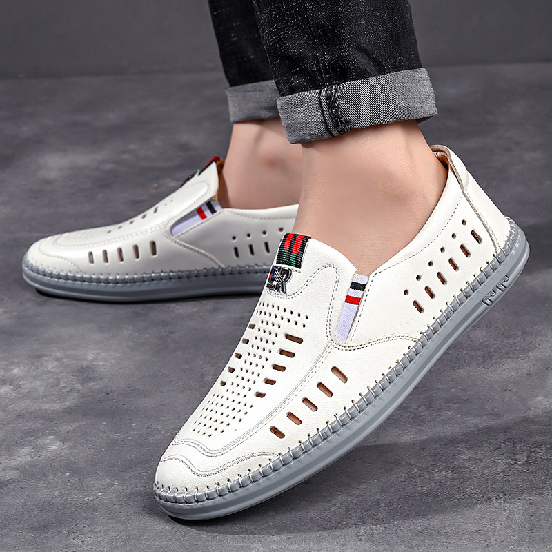 Men's Round Head Two-layer Cow Leather Casual Shoes