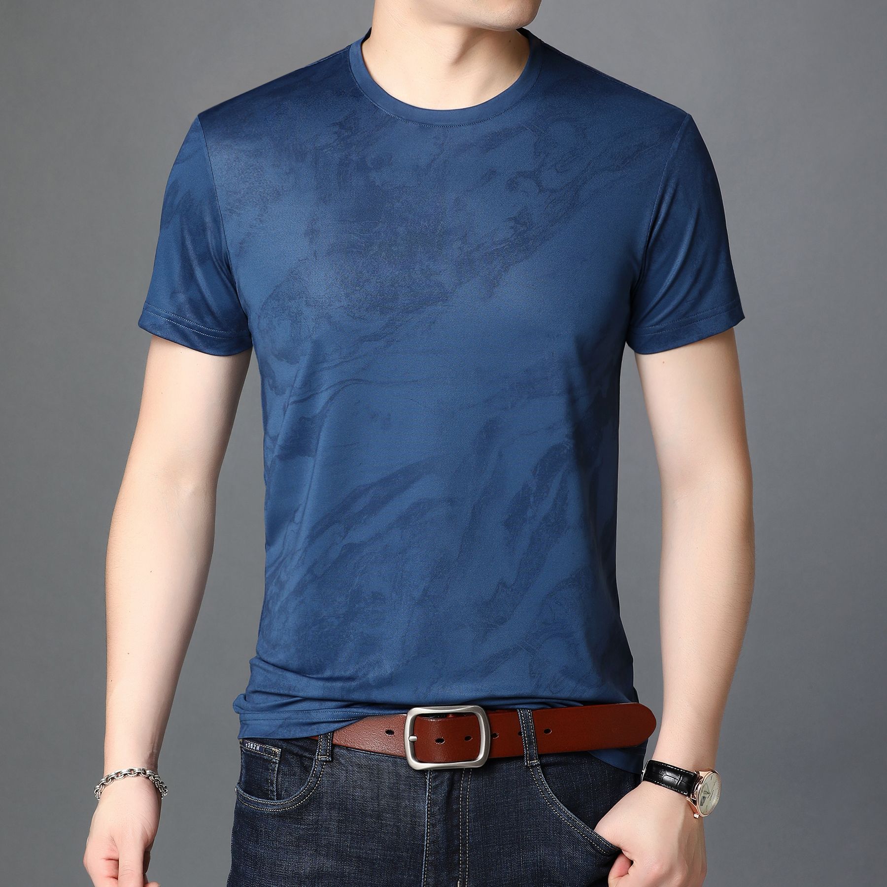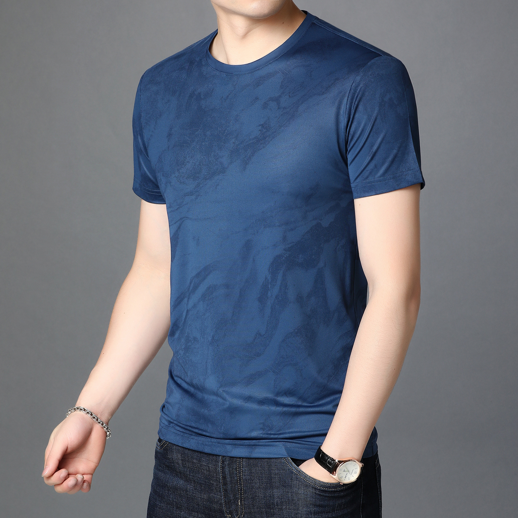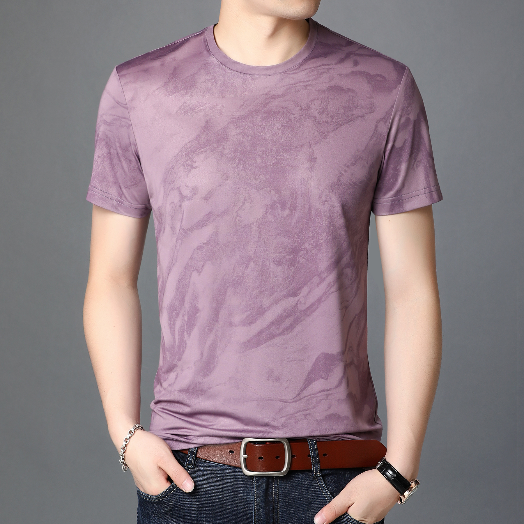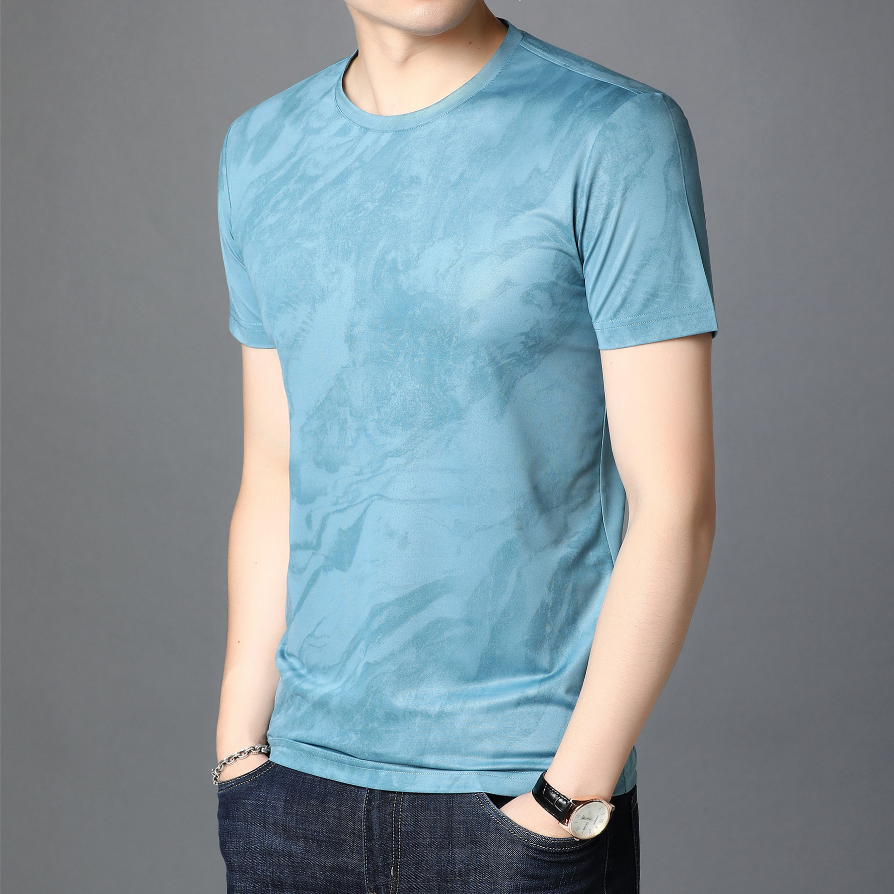 Men's Round Neck Mercerized Cotton Short Sleeves