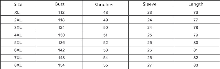 Size: XL, XXL, 3XL, 4XL, 5XL, 6XL, 7XL (need +2 yuan), 8XL (need +2 yuan)