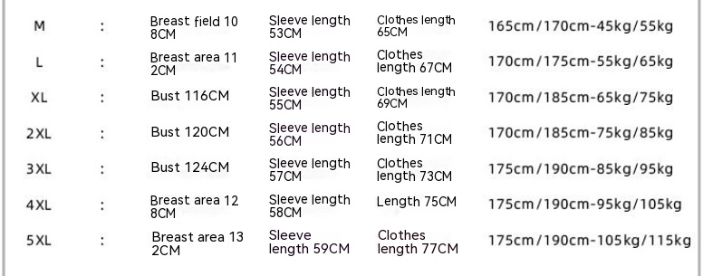 Size: M,L,XL,XXL,XXXL,XXXXL,5XL.