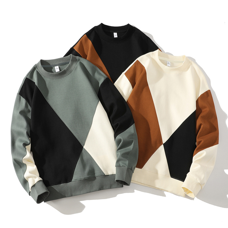 Men's Round Neck Sweater Spring Fashion Loose Breathable Stitching Long Sleeve