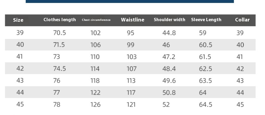 Size: 39/M,40/L,41/XL,42/2XL,43/3XL,44/4XL,45/5XL