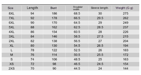 Size: XXS,XS,S,M,L,XL,2XL,3XL,4XL,5XL,6XL,7XL