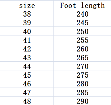 Size: 38, 39, 40, 41, 42, 43, 44, 45, 46, 47, 48