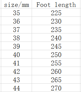 Size: 35, 36, 37, 38, 39, 40, 41, 42, 43, 44