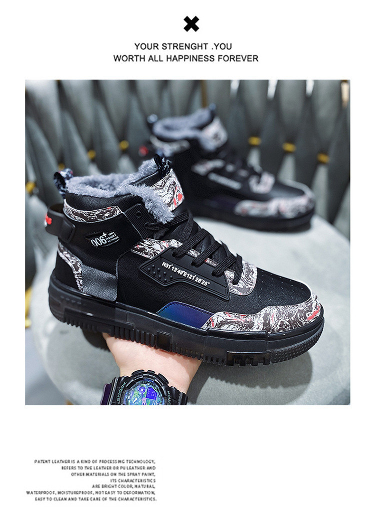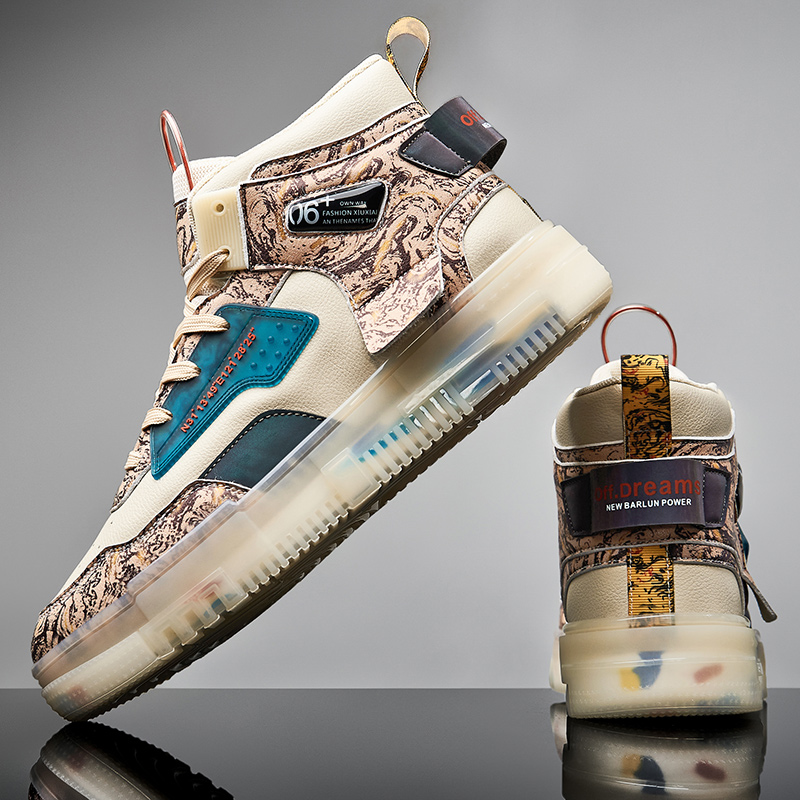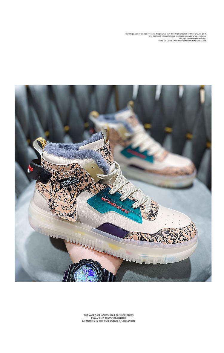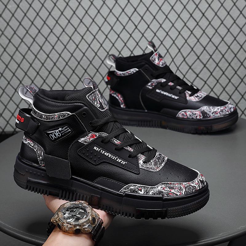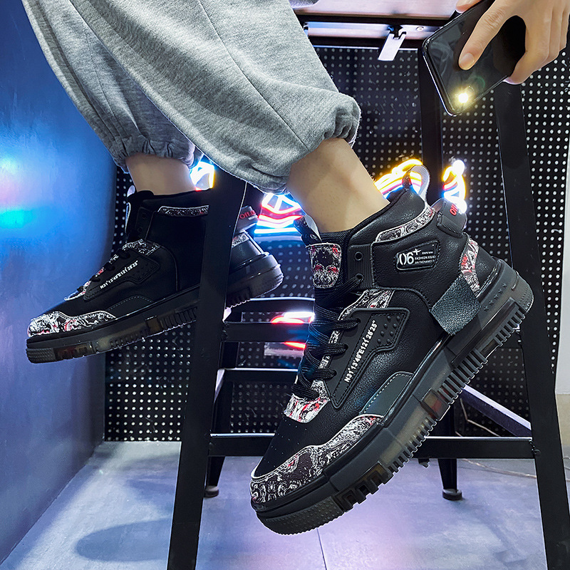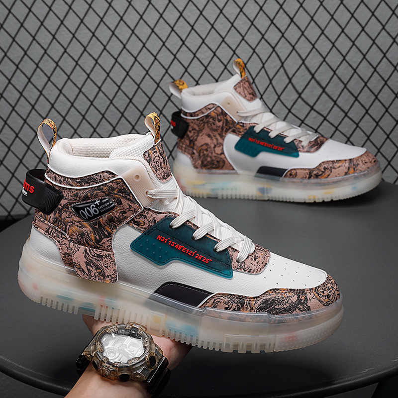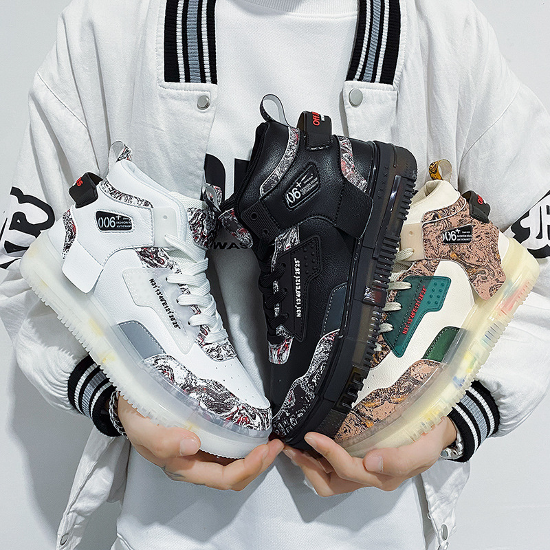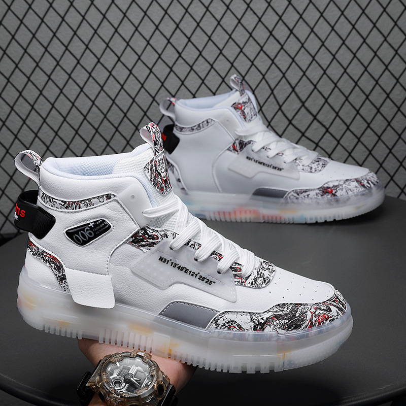Men's Shoes Popcorn Soft Sole Comfortable High Top Flat Small White