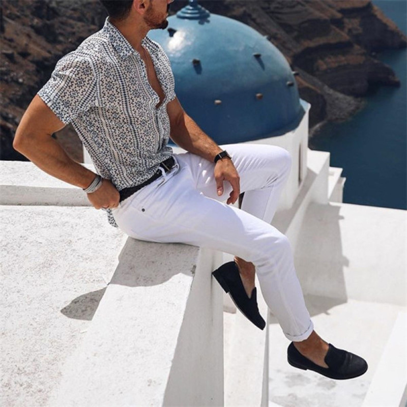 Men's short sleeve printed fashion casual cardigan shirt