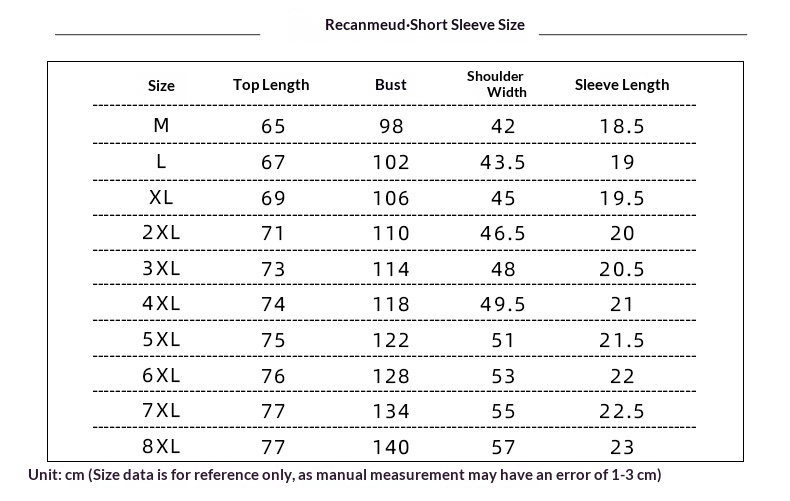 Sizes: M, L, XL, 2XL, 3XL, 4XL, 5XL, 6XL, 7XL, 8XL