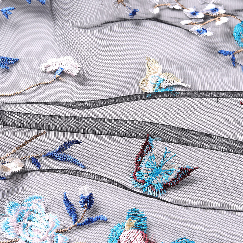 Colour:Green, embroidered two blue flowers, embroidered three blue birds