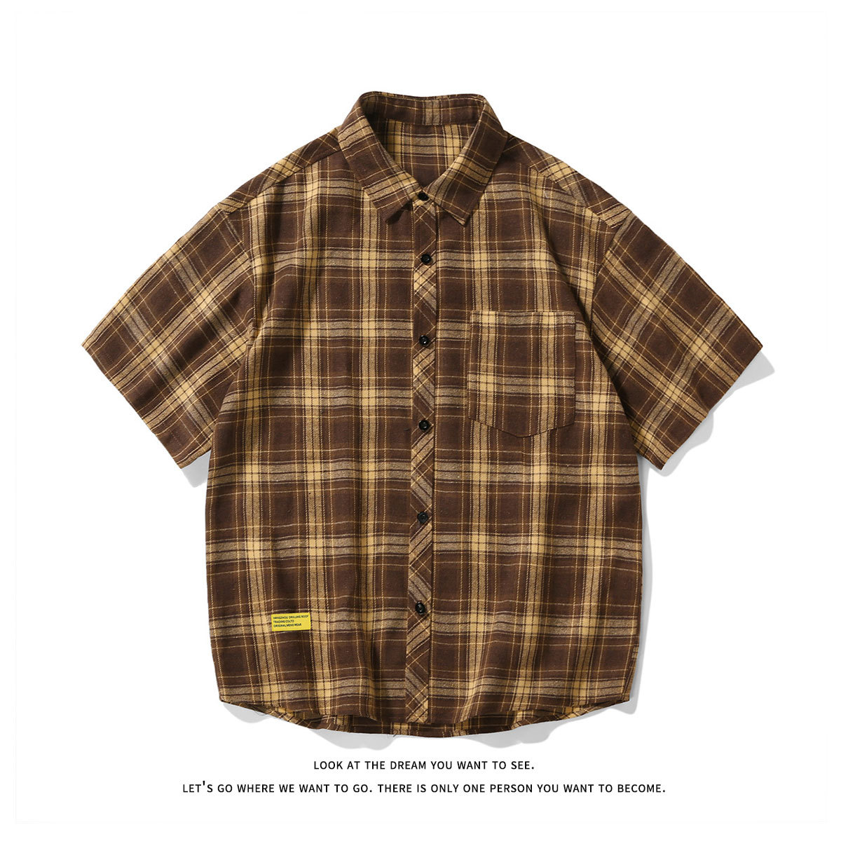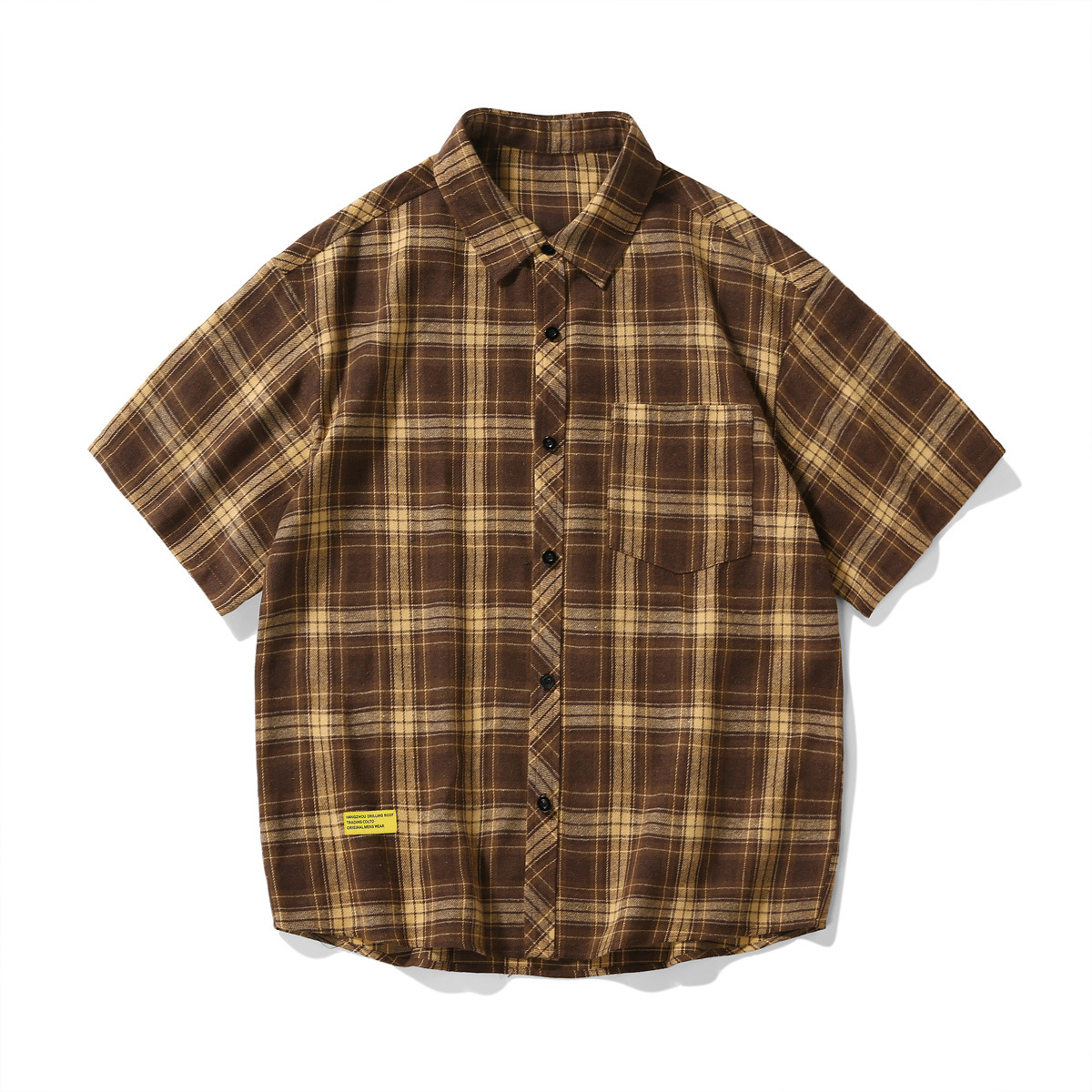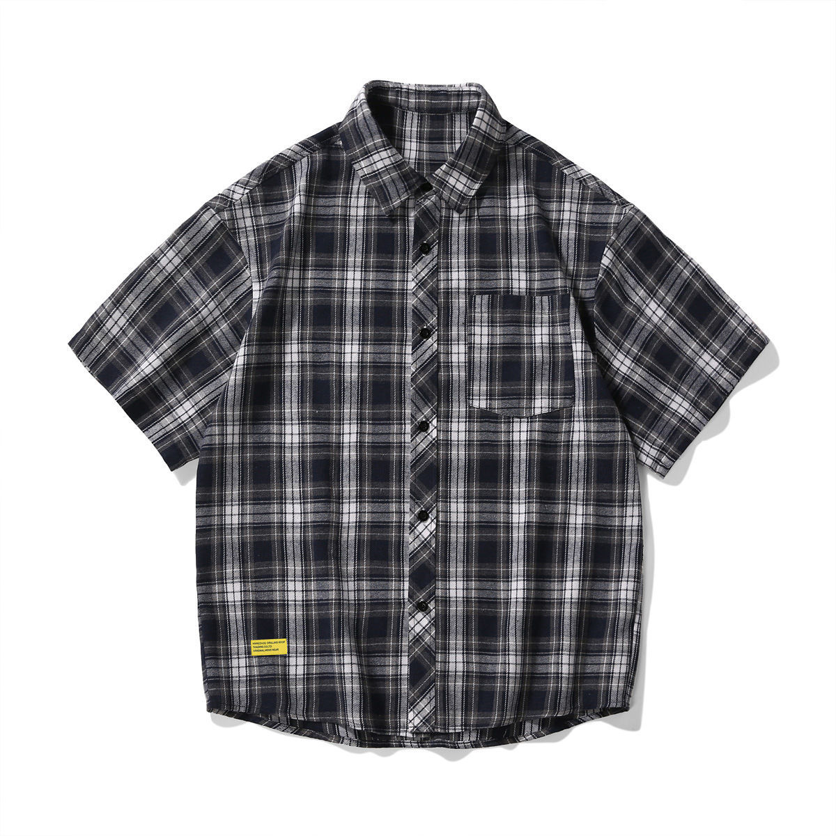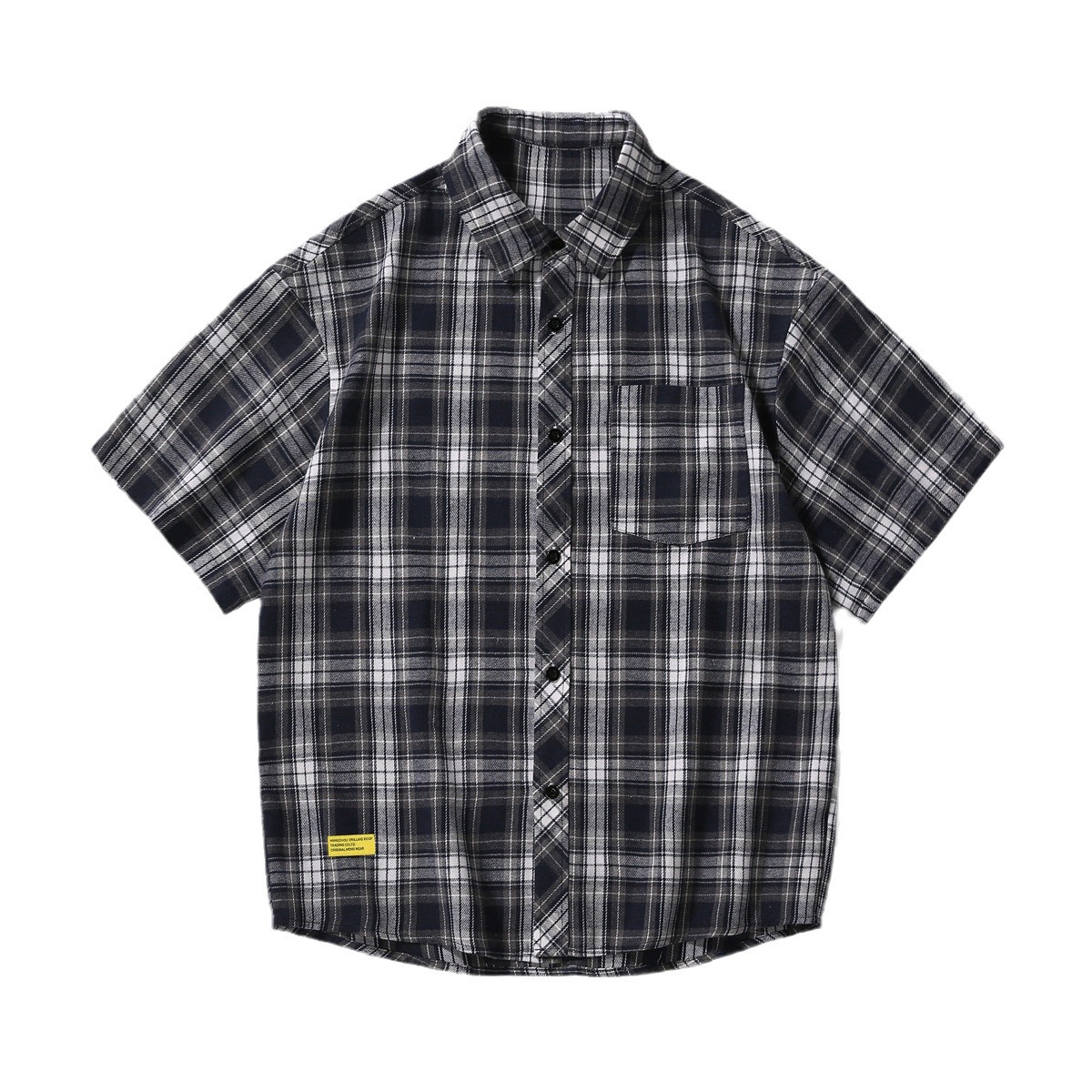 Men's Short-sleeved Plaid Shirt Retro Plus Size Casual Shirt