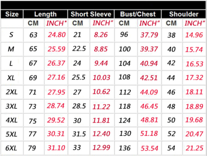 Size: XXS, XS, S, M, L, XL, 2XL, 3XL, 4XL, 5XL, 6XL, 100, 110, 120, 130, 140, 150, 160