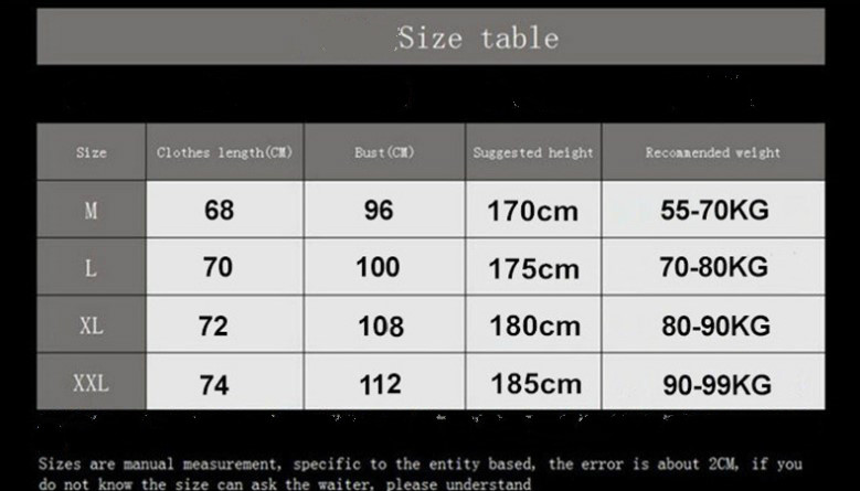 1. Asian sizes are 1 to 2 sizes smaller than European and American people. Choose the larger size if your size between two sizes. Please allow 2-3cm differences due to manual measurement.