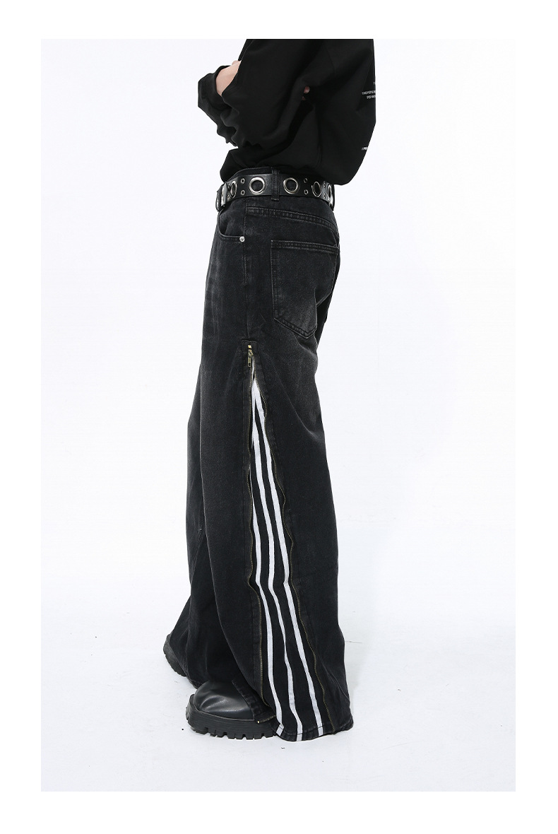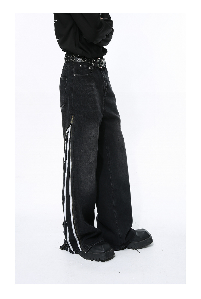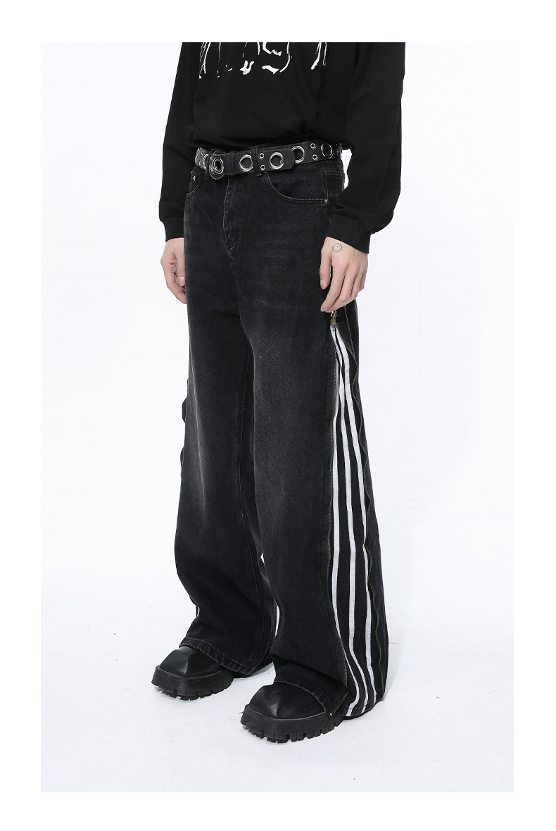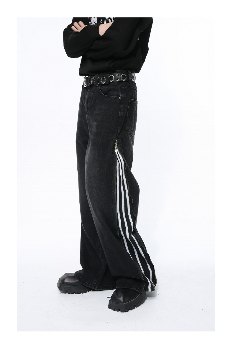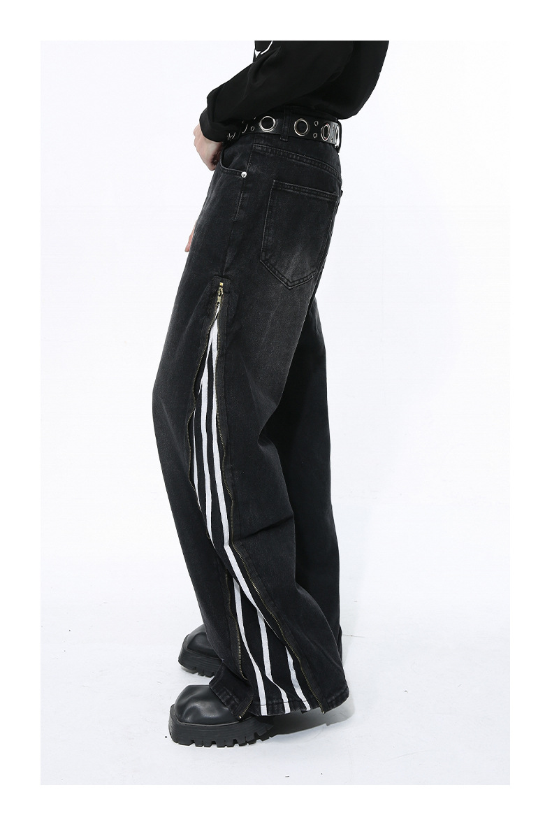 Men's Side Zipper Striped Straight Loose Jeans