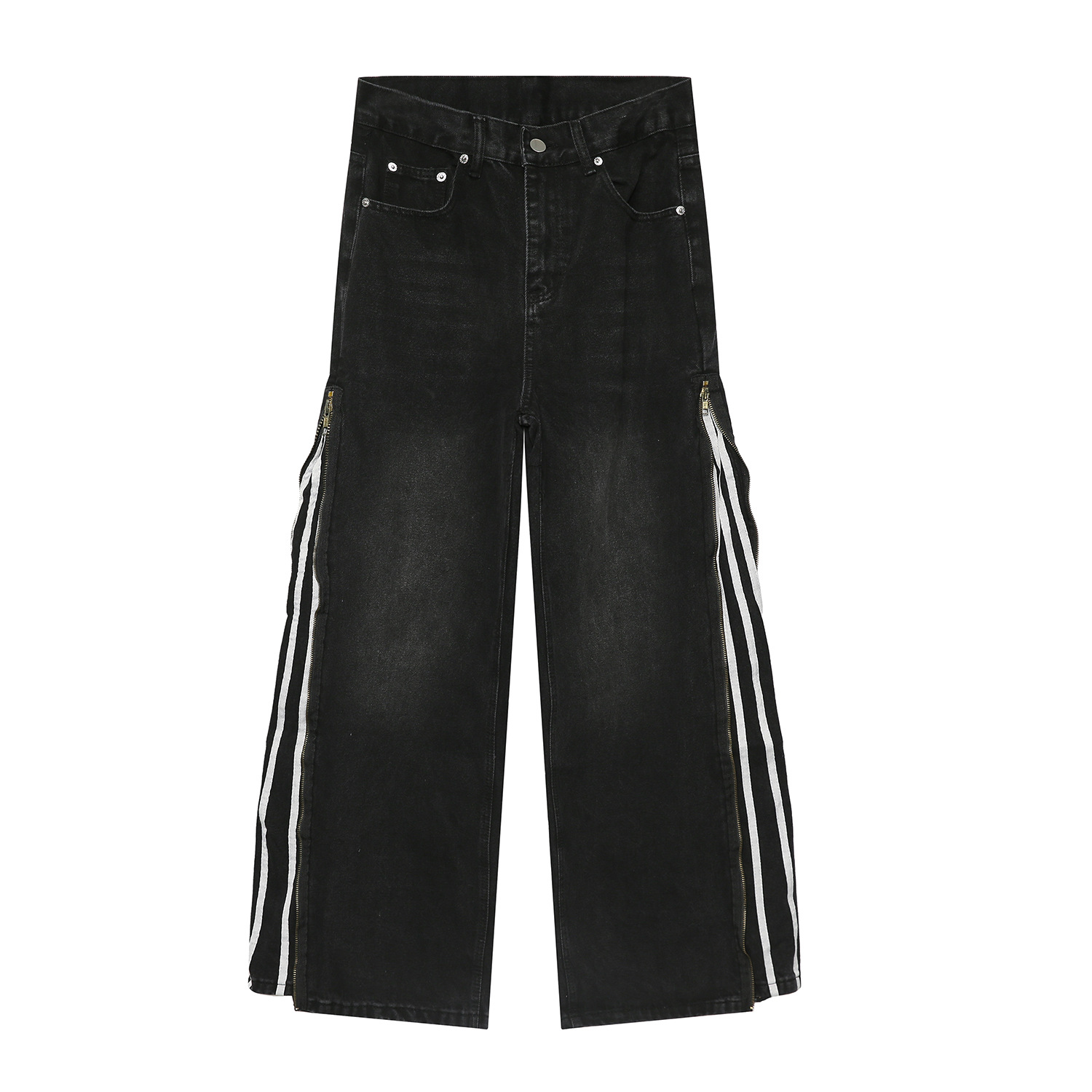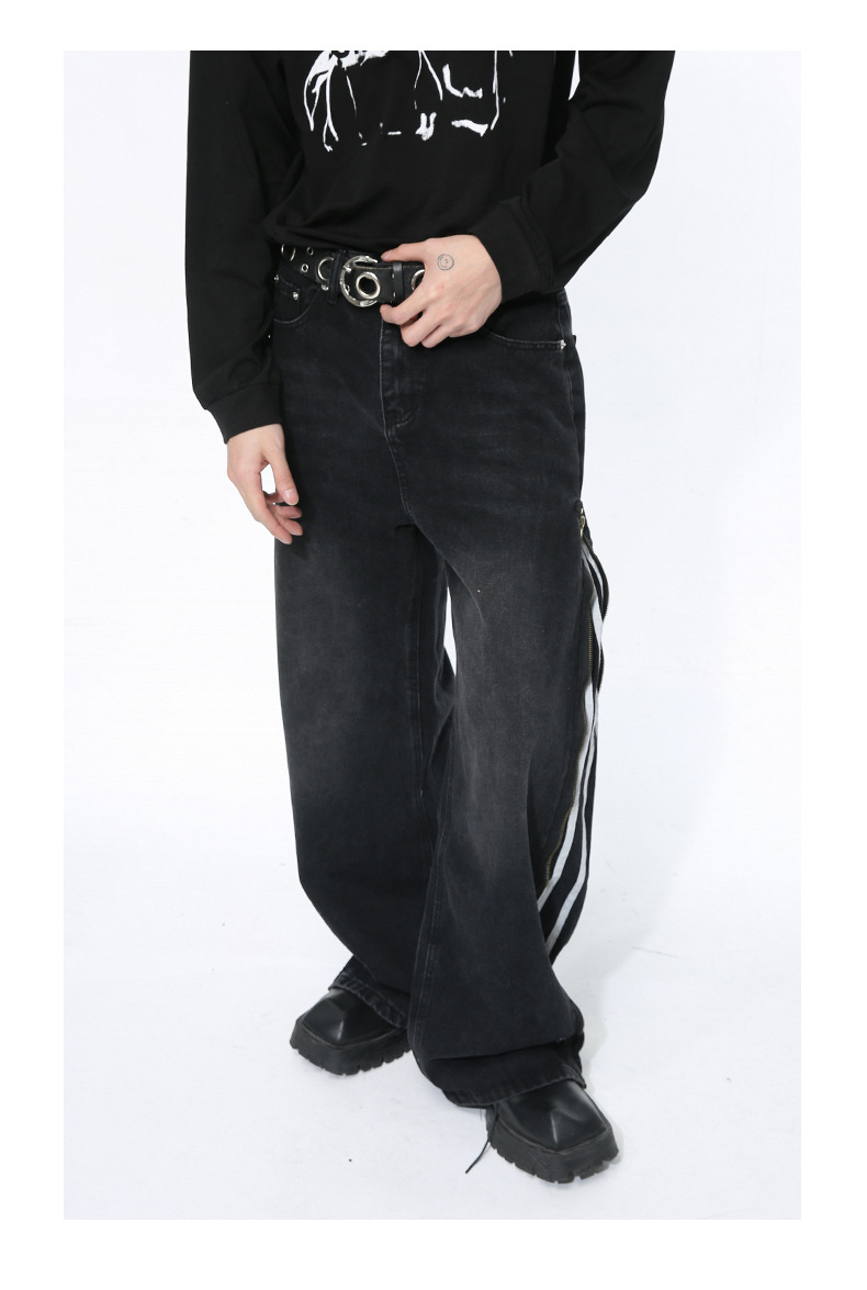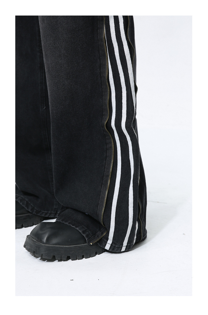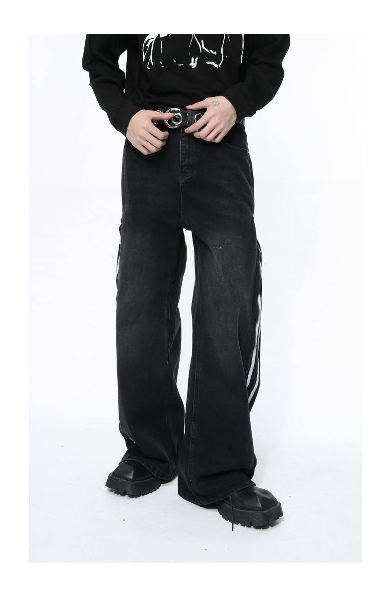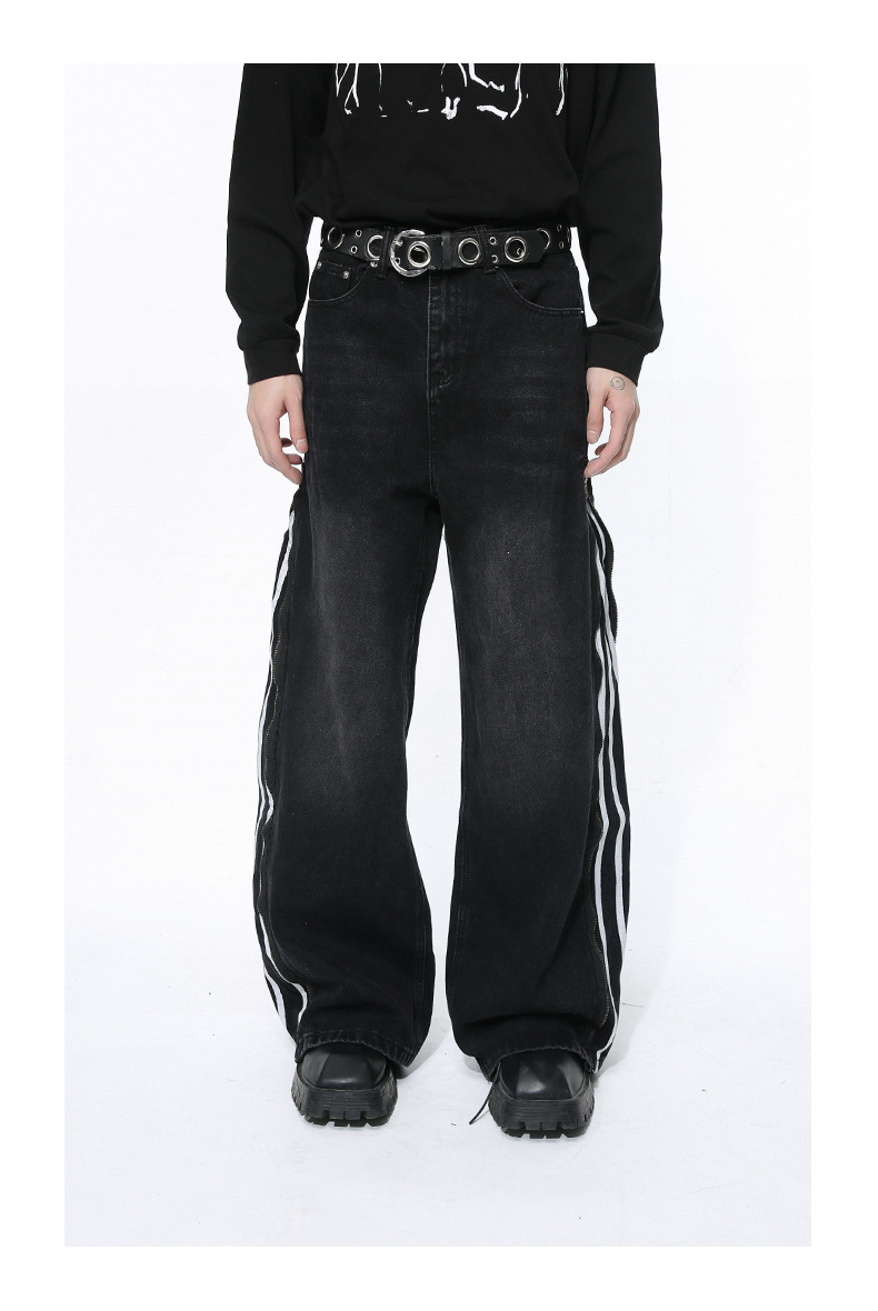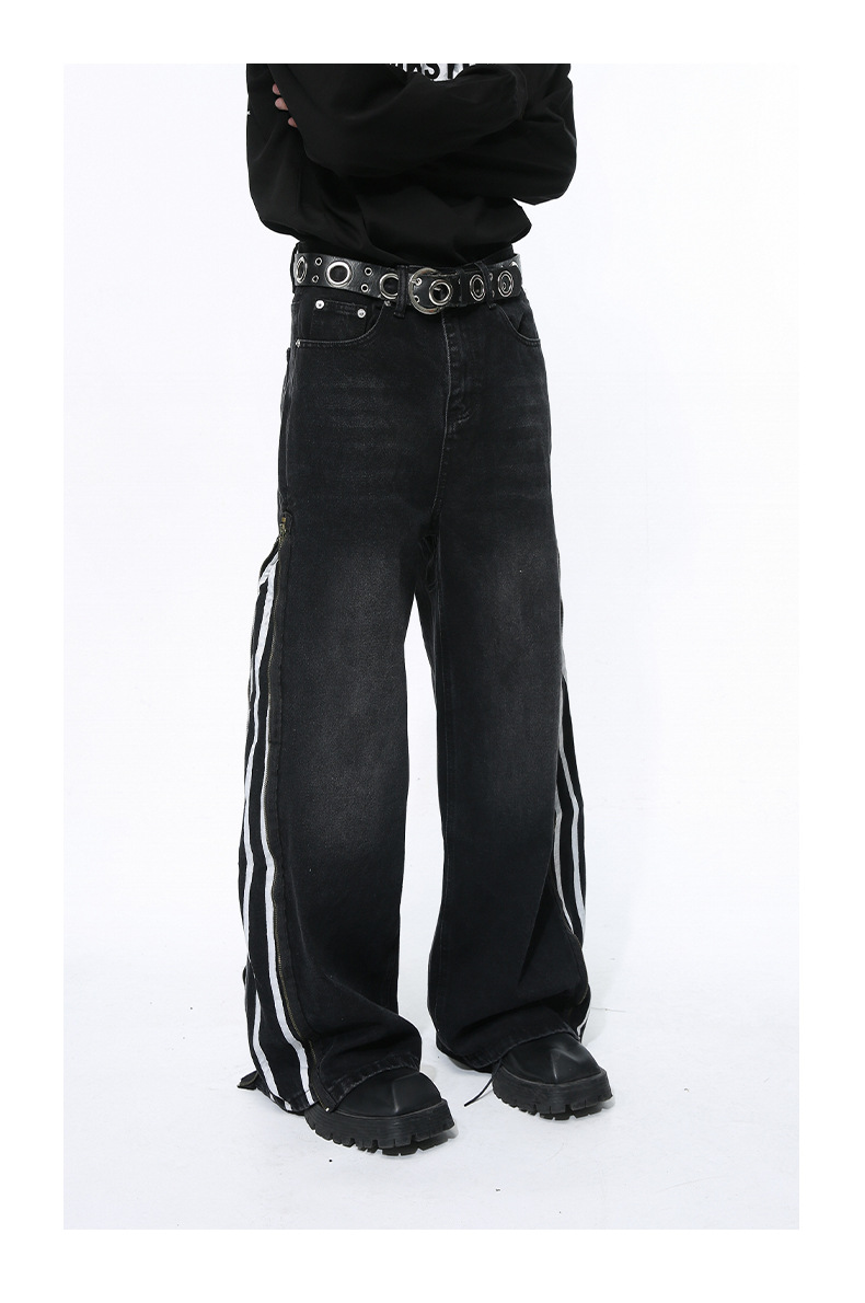 Men's Side Zipper Striped Straight Loose Jeans