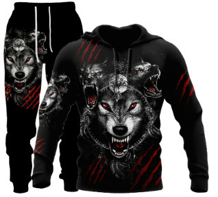 Men's Simple 3D Printed Hoodie Sweatpants Suit
