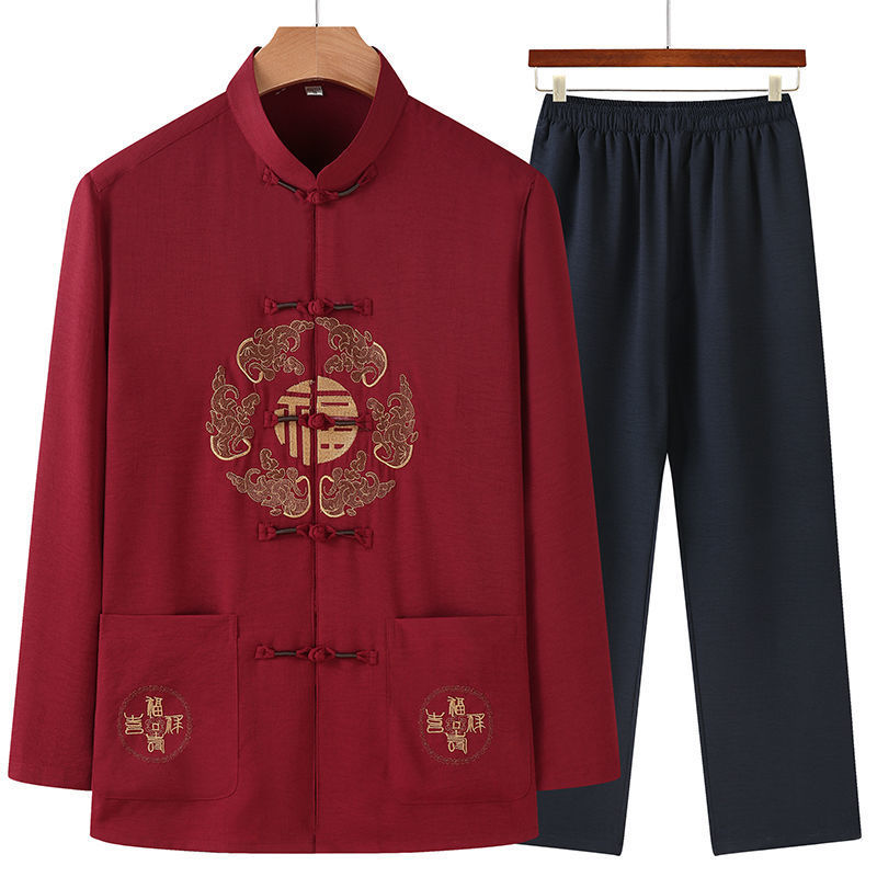 Color: men's long sleeve red [suit], men's long sleeve light gray [suit], men's long sleeve navy blue [suit], men's long-sleeved green [suit], men's long sleeve dark gray [suit]]