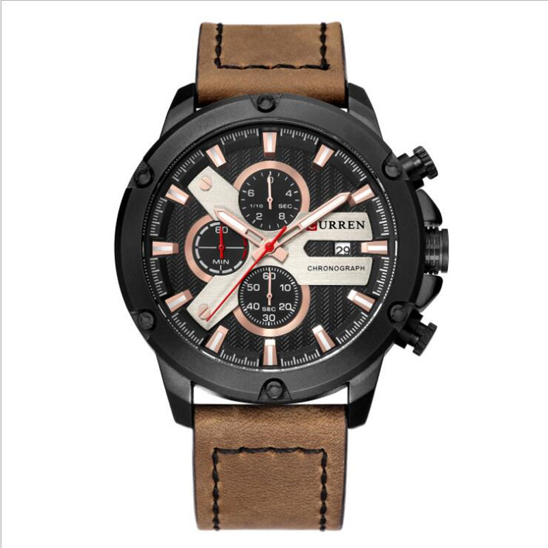 Men's Six-Hands Calendar Waterproof Belt Quartz Watch
