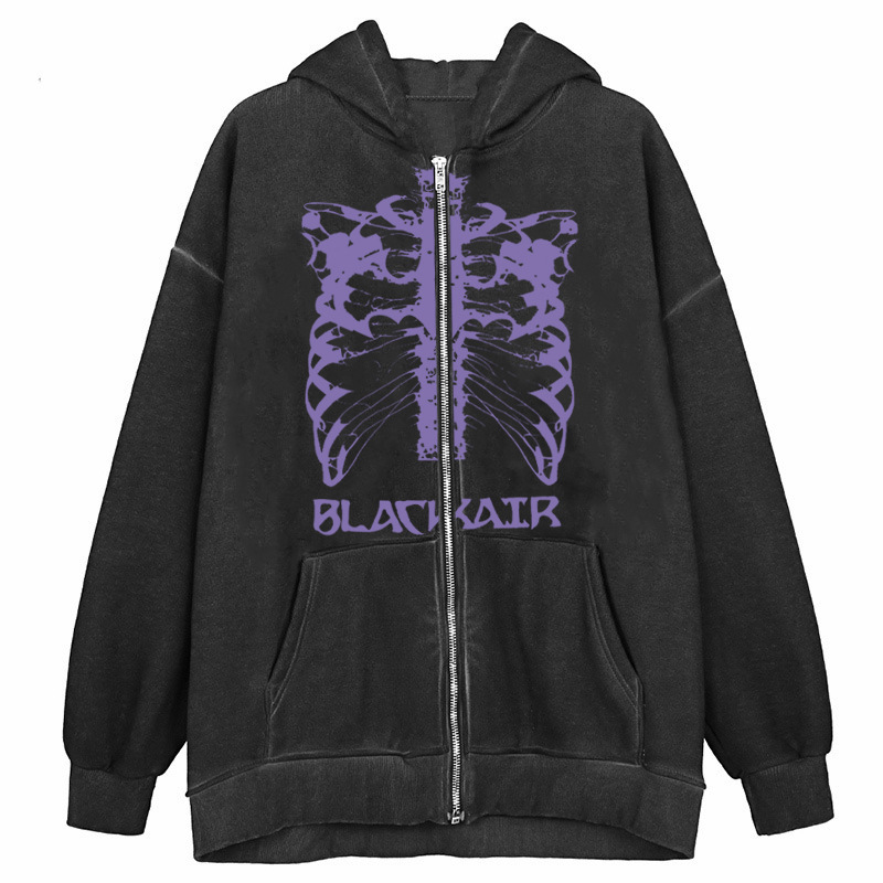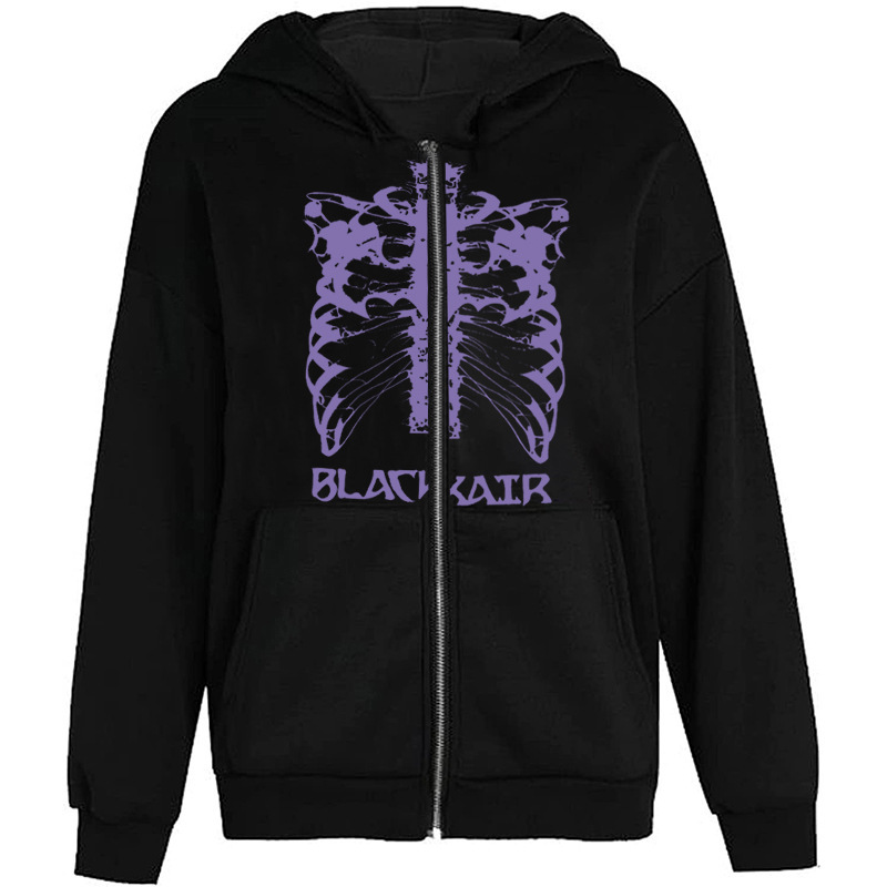 Color: black zipper, black 1# zipper, black hoodie, printed, white short zipper