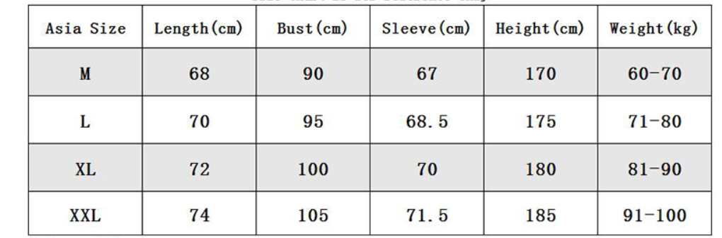 1. Asian sizes are 1 to 2 sizes smaller than European and American people. Choose the larger size if your size between two sizes. Please allow 2-3cm differences due to manual measurement.