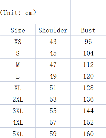 Size: XS, S, M, L, XL, 2XL, 3XL, 4XL, 5XL
