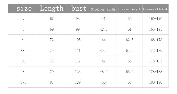 Size: M, L, XL, XXL, XXXL, XXXXL, 5XL