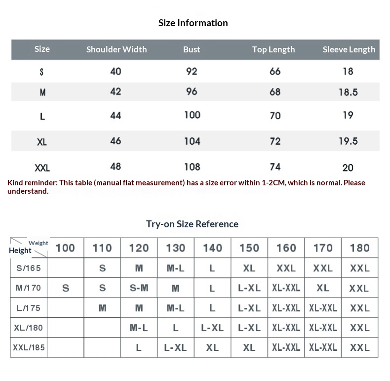 Sizes: S, M, L, XL, XXL