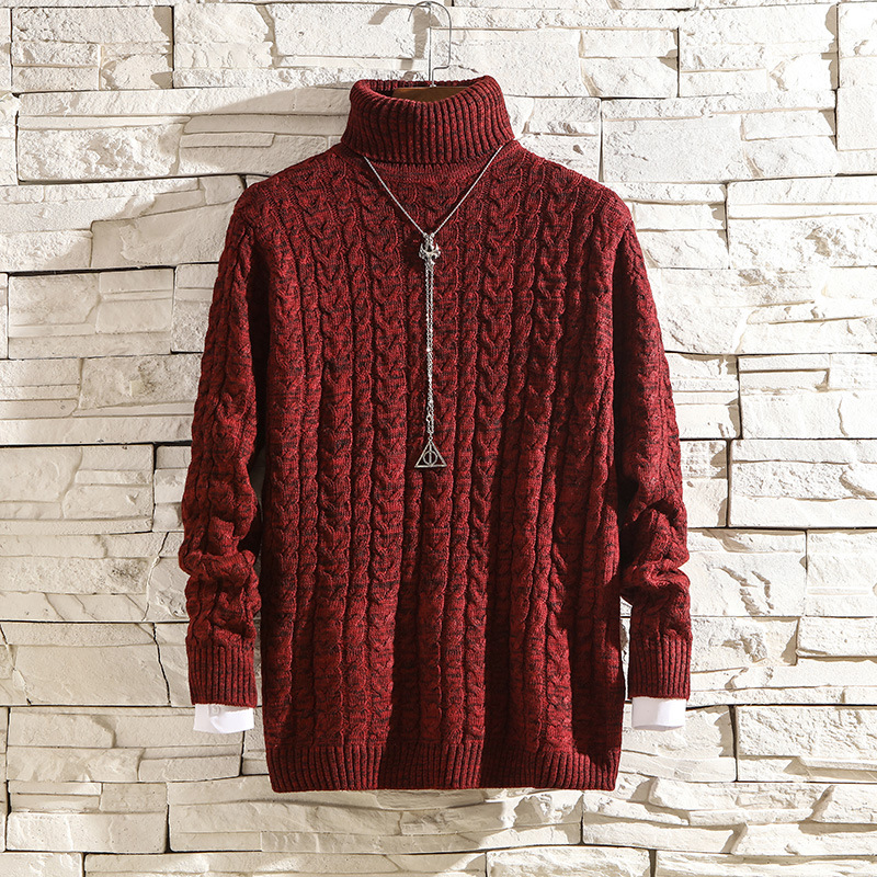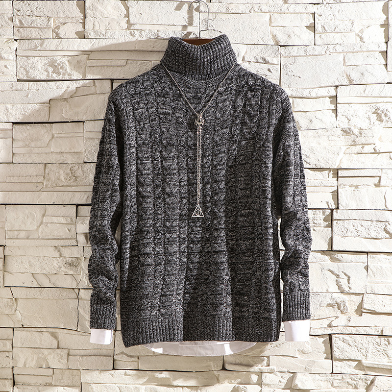Men's Solid Color High Collar Thickened Fashionable Warm Sweater