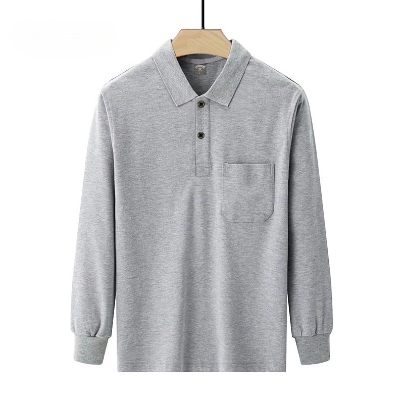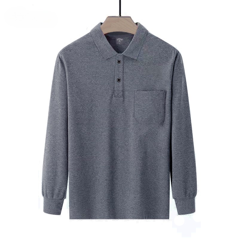 Men's Solid-color Long-sleeve Top With A Turn-down Collar And Real Pockets