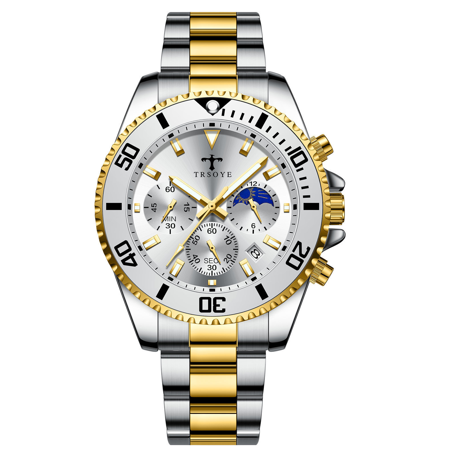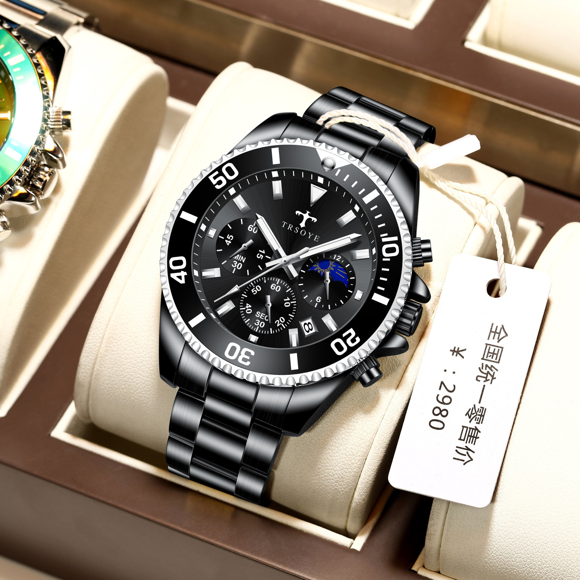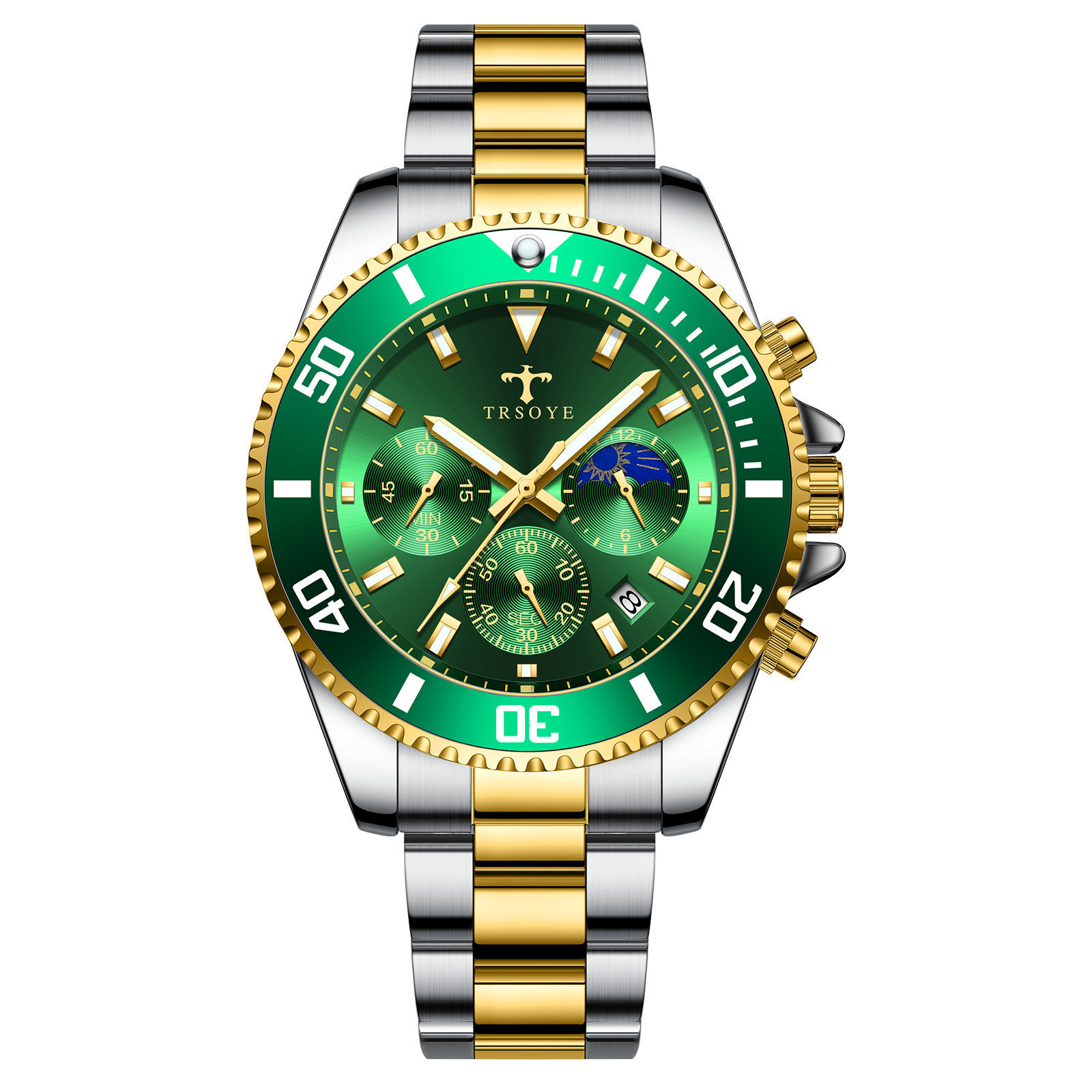 Color: between TRS688 gold shell green surface Golden watchbands, between TRS688 gold shell white surface Golden watchbands, TRS688 black shell black surface black steel belt, TRS688 silver case green surface silver steel belt, TRS688 silver shell black surface silver steel belt, TRS688 Gold Case Black surface gold strap