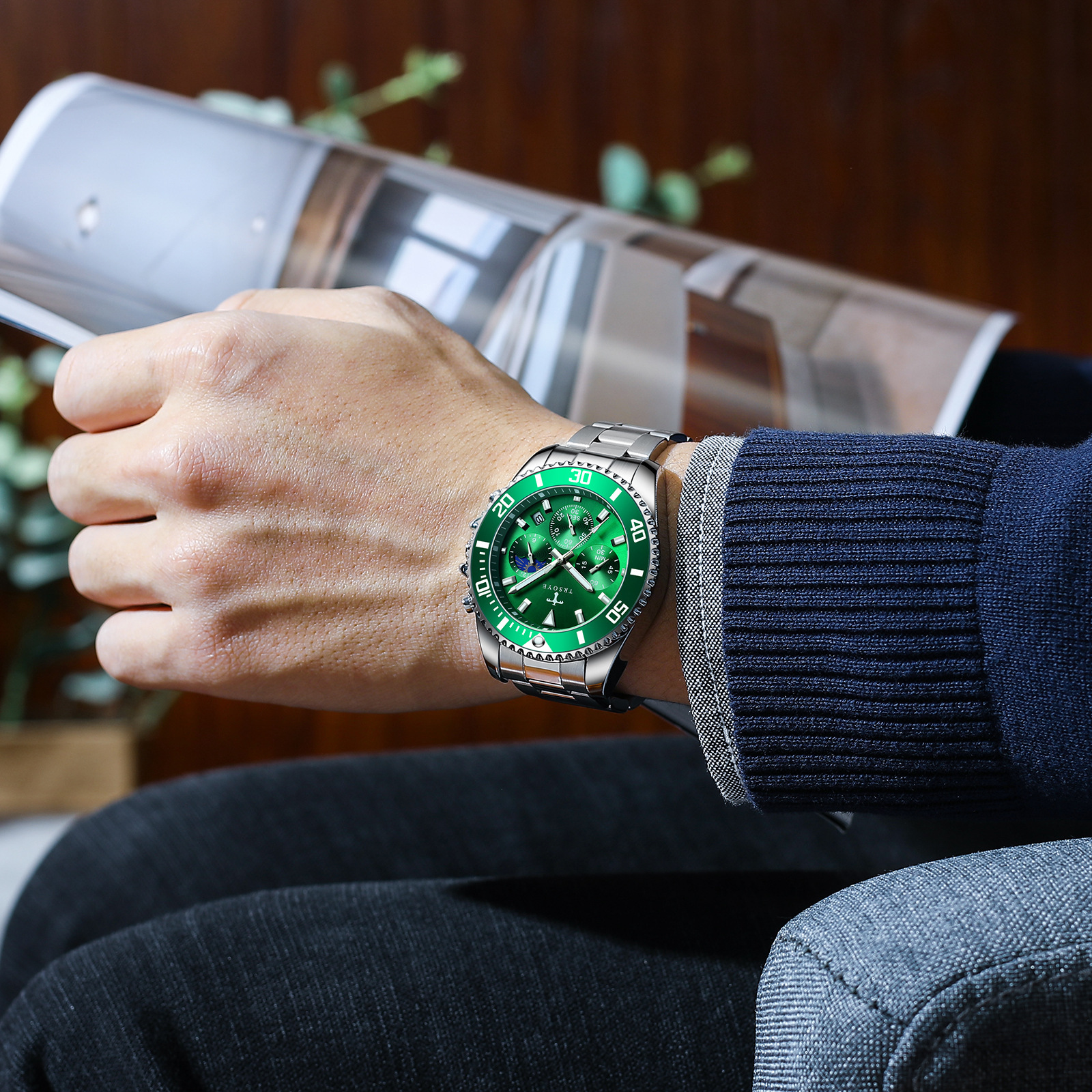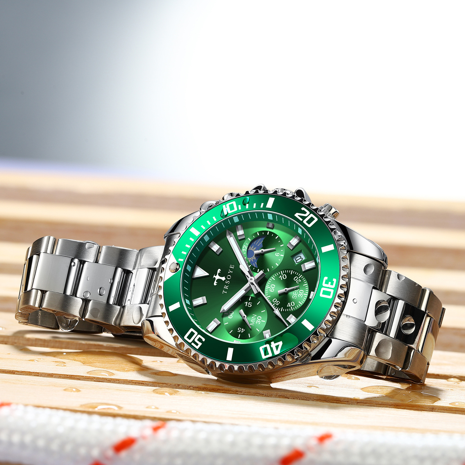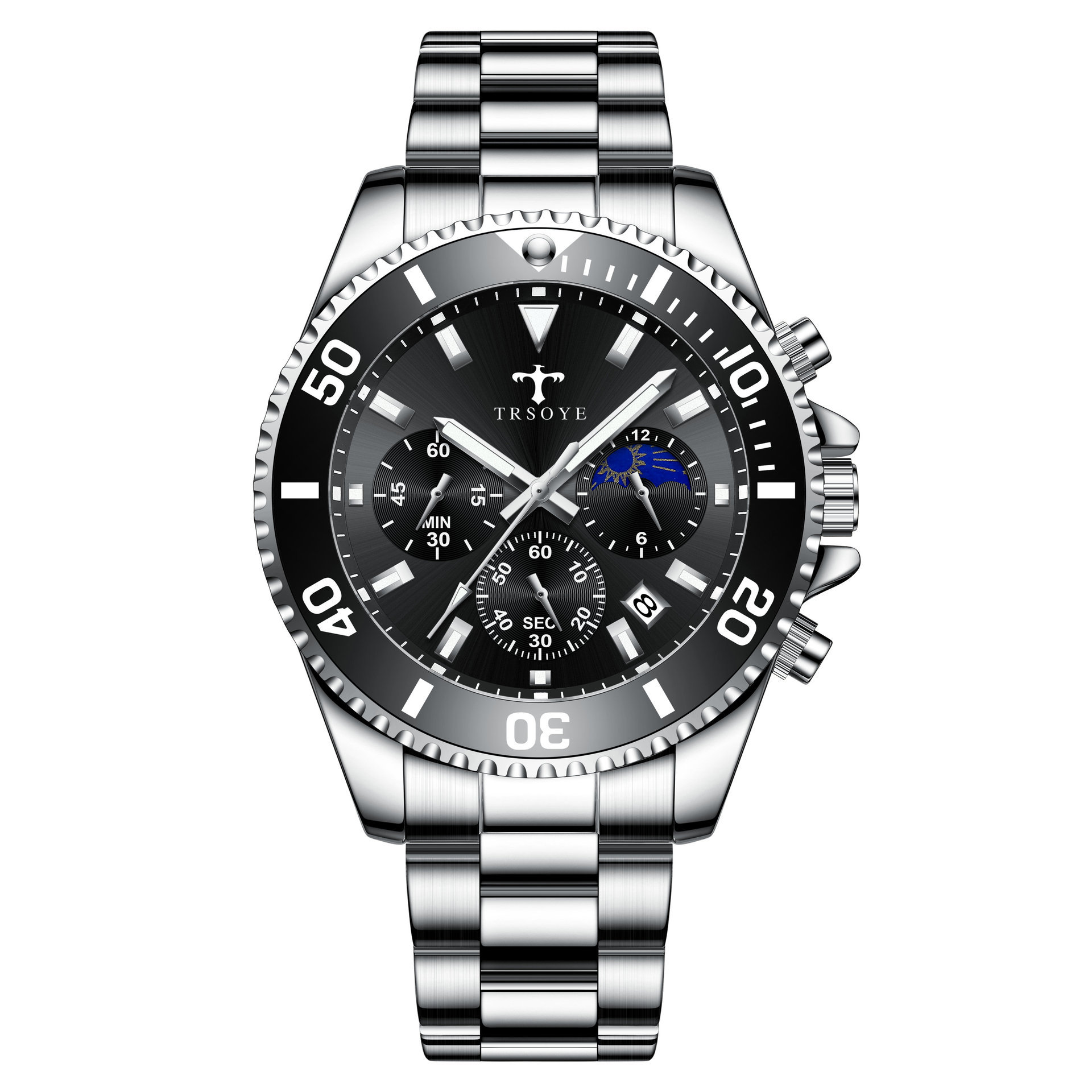 Color: between TRS688 gold shell green surface Golden watchbands, between TRS688 gold shell white surface Golden watchbands, TRS688 black shell black surface black steel belt, TRS688 silver case green surface silver steel belt, TRS688 silver shell black surface silver steel belt, TRS688 Gold Case Black surface gold strap