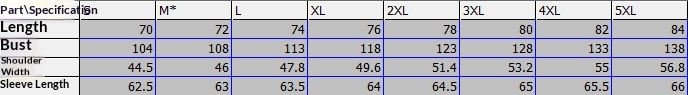 Sizes: S, M, L, XL, 2XL, 3XL, 4XL, 5XL, 6XL