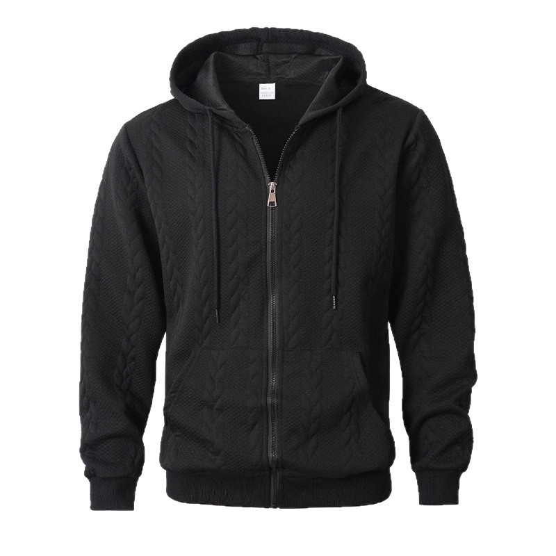 Men's Sporty Solid-Color Patterned Casual Hoodie Coat