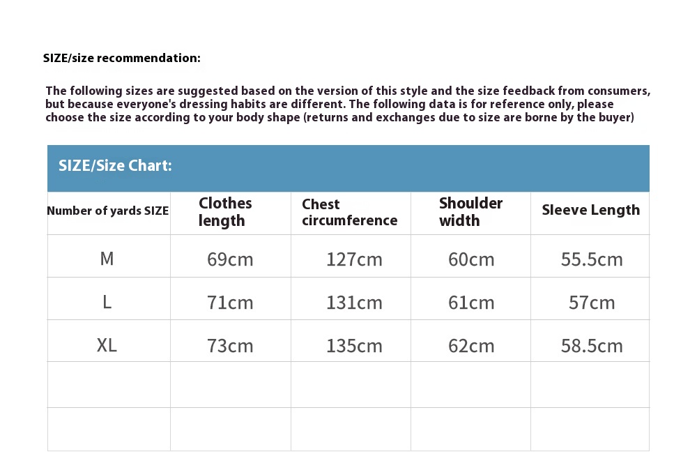 1. Asian sizes are 1 to 2 sizes smaller than European and American people. Choose the larger size if your size between two sizes. Please allow 2-3cm differences due to manual measurement. 2. Please check the size chart carefully before you buy the item, if you don't know how to choose size, please contact our customer service. 3.As you know, the different computers display colors differently, the color of the actual item may vary slightly from the following images.