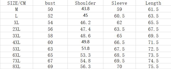 Size: M, L, XL, XXL, 3XL,4XL, 5XL, 6XL, 7XL, 8XL
